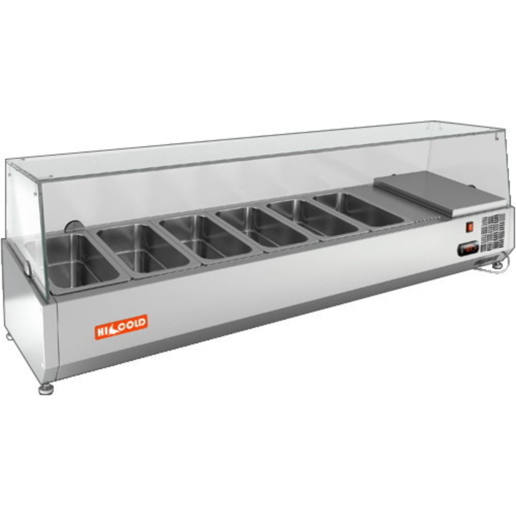 Каталог оборудования Холодильное оборудованиеВитрины для ингредиентовВитрина холодильная для ингредиентов HICOLD VRTG 1425 к PZ4 (1/3) Витрина холодильная для ингредиентов HICOLD VRTG 1425 к PZ4 (1/3) Код товара: 064-653 Поделиться: WhatsAppTelegram СравнитьДобавить в КПВ избранное 0 64 413 ₽ В корзину 0 шт Под заказСамовывоз сегодня бесплатно Взять в кредит Купить в лизинг Получить консультацию в WhatsApp Описание Характеристики Отзывы 0 Инструкции 3 Витрина холодильная для ингредиентов HICOLD VRTG 1425 к PZ4 (1/3) предназначена для охлаждения, кратковременного хранения и демонстрации ингредиентов, салатов и готовых блюд на предприятиях общественного питания и торговли. Устанавливается на холодильные столы для пиццы серии PZ4 благодаря встроенным креплениям в нижней части корпуса. На фото показана аналогичная модель с настольной установкой. Ключевые особенности: Корпус из нержавеющей стали — долговечность, простота ухода. Электронная панель управления — точная регулировка температуры. Исполнение G — стеклянная надстройка для удобного обзора продуктов. Высота витрины — 459 мм — компактное размещение на рабочей поверхности. Вместимость: 6xGN1/3 — рациональная организация хранения (гастроёмкости приобретаются отдельно). Совместимые модели столов: PZ4-1/GN HICOLD VRTG 1425 к PZ4 (1/3) — это профессиональная настольная витрина, которая сочетает компактные размеры, современное управление и высокое качество охлаждения. Отличный выбор для пиццерий, ресторанов и кафе, где важны удобство доступа, скорость работы и эффектная подача продуктов.Изображение товара, представленного на фото, может отличаться от его фактического вида. Показать все Габаритные размеры1425×385×459 ммДиапазон рабочей температуры от +2 до +7 °CДлина1425 ммГлубина385 ммВысота459 ммТип крышкиСтеклянная Гастроемкостей6 штТип гастроемкостейGN1/3 Мощность0,15 ВтНапряжение220 ВТип охлажденияСтатическое Материал изготовленияНержавеющая сталь ХладагентR134 Вес нетто46 кгВес брутто70 кгТип оттайкиРучная Габариты в упаковке1525×485×559 ммБрендHicold Оставить отзыв Еще никто не оставил отзыв на этот товар Инструкция на HICOLD VRTG 1425 к PZ4.pdfСхема установки на стол.jpgДекларация о соответствии.pdf Похожие товары Перейти в каталог Под заказ 68 031 ₽ Витрина холодильная для ингредиентов HICOLD VRTG 1835 1/4 Под заказ 49 135 ₽ Витрина холодильная для ингредиентов Tatra TVR1500-7GN1/4 Под заказ 58 527 ₽ Витрина холодильная для ингредиентов HICOLD VRTG 1000 1/3 Под заказ 73 972 ₽ Витрина холодильная для ингредиентов HICOLD VRX 2000 1/3 В наличии 49 124 ₽ Витрина холодильная для ингредиентов HURAKAN HKN-VRX2000/380 В наличии 82 699 ₽ Витрина холодильная для ингредиентов TEFCOLD VK38-120 Под заказ 58 257 ₽ Витрина холодильная для ингредиентов HICOLD VRTG 1000 к PZE3 (1/3) В наличии 53 290 ₽ Витрина холодильная для ингредиентов HICOLD VRTU 1390 к PZ3 (1/3) С этим товаром покупают В наличии 158 928 ₽ Шкаф холодильный среднетемпературный Arkto R1.4-G Под заказ 153 697 ₽ Шкаф холодильный универсальный Север ШХ-1400 УН/КС Под заказ 183 963 ₽ Шкаф морозильный Abat ШХн-1,0 Под заказ 155 377 ₽ Камера холодильная Polair КХН-10,28 (2260×2560×2200) 80 мм Под заказ 526 999 ₽ Моноблок холодильный среднетемпературный Ариада AMS 335 N Под заказ 157 910 ₽ Стол холодильный среднетемпературный Carboma T70 M3-1 (3GN/NT Полюс) с бортом (9006-2 корпус серый 1 дверь, 6 ящ) Под заказ 83 781 ₽ Стол морозильный HiCold GNE 1/BT W Под заказ 134 275 ₽ Стол холодильный для пиццы Polair TMi2pizza-GC Ранее просмотрено В наличии 64 198 ₽ Витрина холодильная для ингредие