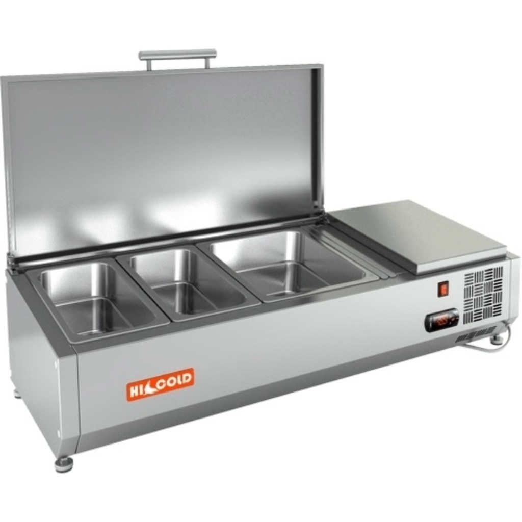 Каталог оборудования Холодильное оборудованиеВитрины для ингредиентовВитрина холодильная для ингредиентов HICOLD VRTU 1000 к PZE3 (1/3) Витрина холодильная для ингредиентов HICOLD VRTU 1000 к PZE3 (1/3) Код товара: 064-664 Поделиться: WhatsAppTelegram СравнитьДобавить в КПВ избранное 0 47 673 ₽ В корзину 0 шт Под заказСамовывоз сегодня бесплатно Взять в кредит Купить в лизинг Получить консультацию в WhatsApp Описание Характеристики Отзывы 0 Инструкции 3 Витрина холодильная для ингредиентов HICOLD VRTU 1000 к PZE3 (1/3) предназначена для охлаждения, кратковременного хранения и демонстрации ингредиентов, салатов и готовых блюд на предприятиях общественного питания и торговли. Устанавливается на холодильные столы для пиццы серии PZE3 благодаря встроенным креплениям в нижней части корпуса. На фото показана аналогичная модель с настольной установкой. Ключевые особенности: Корпус из нержавеющей стали — долговечность и лёгкость ухода. Электронная панель управления — точная настройка температуры. Исполнение U — оснащена крышкой для защиты продуктов. Высота витрины — 279 мм — компактное размещение на рабочей поверхности. Вместимость: 2 x GN1/3 + 1 x GN1/2 — рациональная организация хранения (гастроёмкости приобретаются отдельно). Совместимые модели столов: PZE3-11/GN, PZE3-11/SN HICOLD VRTU 1000 к PZE3 (1/3) — это профессиональная настольная витрина, которая сочетает компактные размеры, современное управление и надежную защиту ингредиентов. Отличный выбор для пиццерий, ресторанов и кафе, где важны удобство доступа, сохранность продуктов и высокая скорость работы.Изображение товара, представленного на фото, может отличаться от его фактического вида. Показать все Габаритные размеры1000×385×279 ммДиапазон рабочей температурыот +2 до +7 °CДлина1000 ммГлубина385 ммВысота279 ммТип крышкиМеталлическая Гастроемкостей3 штТип гастроемкостейGN 1/2, GN 1/3 Напряжение220 ВТип охлажденияСтатическое Материал изготовленияНержавеющая сталь ХладагентR134 Мощность0,15 кВтВес нетто 27 кгВес брутто60 кгТип оттайкиРучная Габариты в упаковке1180×550×590 ммБрендHicold Оставить отзыв Еще никто не оставил отзыв на этот товар Инструкция на HICOLD VRTU 2360 к PZ4.pdfСхема установки на витрину.jpgДекларация о соответствии.pdf Похожие товары Перейти в каталог Под заказ 50 575 ₽ Витрина для ингредиентов Polair VT2-G (1/3) с крышкой В наличии 72 104 ₽ Витрина холодильная для ингредиентов TEFCOLD VK33-120 С этим товаром покупают В наличии 102 148 ₽ Стол морозильный Cooleq SNACK2100BT/600 В наличии 92 440 ₽ Льдогенератор HURAKAN HKN-IMG40 (гурме) Ранее просмотрено Под заказ 141 362 ₽ Стол холодильный среднетемпературный HURAKAN HKN-GN3TN-112
