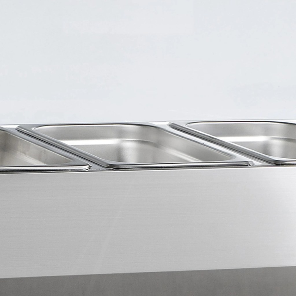 Каталог оборудования Холодильное оборудованиеВитрины для ингредиентовВитрина холодильная для ингредиентов TEFCOLD VK33-150 Витрина холодильная для ингредиентов TEFCOLD VK33-150 Код товара: 010-382 Поделиться: WhatsAppTelegram СравнитьДобавить в КПВ избранное 0 93 276 ₽ В корзину 0 шт В наличииСамовывоз сегодня бесплатно Взять в кредит Купить в лизинг Получить консультацию в Max Описание Характеристики Отзывы 0 Инструкции 2 Витрина холодильная для ингредиентов TEFCOLD VK33-150 предназначена для кратковременного хранения и демонстрации готовых салатов, мясных и рыбных закусок, а также ингредиентов на предприятиях общественного питания и торговли. Корпус и внутренняя обшивка выполнены из нержавеющей стали, обеспечивая долговечность и легкость очистки. Гастроемкости в комплект не входят. Особенности: Статическое охлаждение — равномерное поддержание температуры, подходит для деликатных продуктов. Механическое размораживание — надежное удаление наледи без вмешательства пользователя. Хладагент R600a — экологичный и энергоэффективный. Электронный термостат и градусник — точная настройка и контроль температуры. Гнутый стеклянный колпак — обзор продукции и защита от внешних воздействий. Регулируемые ножки — удобная установка и устойчивость на неровной поверхности. Климатический класс 4 — работа при температуре окружающей среды до +32°C. Вместимость — 7×GN 1/4 глубиной 150 мм, удобно для салатов и закусок. Перегородки — 6 длинных и 1 короткая для удобного разделения продуктов. Уровень шума: 47 дБ — почти бесшумная работа. Хладагент: 0,04 кг — эффективное охлаждение при минимальном расходе. Внутренние размеры: 1145×245×155 мм — компактное размещение емкостей. TEFCOLD VK33-150 — надежная и удобная в эксплуатации витрина для демонстрации и кратковременного хранения продуктов с безопасным поддержанием температуры.Изображение товара, представленного на фото, может отличаться от его фактического вида. Показать все Габаритные размеры1500×335×435 ммДиапазон рабочей температурыот +2 до +10 °CДлина1500 ммГлубина335 ммВысота435 ммТип крышкиСтеклянная Гастроемкостей7 штТип гастроемкостейGN 1/4 Мощность0,112 ВтНапряжение220 ВТип охлажденияСтатическое Уровень шума47 дБКлиматический класс4 ХладагентR600a Вес нетто45 кгВес брутто50 кгТип оттайкиРучная Габариты в упаковке1580×380×310 ммБрендTefcold Оставить отзыв Еще никто не оставил отзыв на этот товар Инструкция на TEFCOLD VK33-150.pdfСхема TEFCOLD VK33-150.jpg Похожие товары Перейти в каталог В наличии 51 291 ₽ Витрина холодильная для ингредиентов HICOLD VRTO 1485 1/3 В наличии 54 963 ₽ Витрина холодильная для ингредиентов HICOLD VRTU 1485 1/3 С этим товаром покупают В наличии 111 237 ₽ Стол морозильный Cooleq GN2100BT Под заказ 132 962 ₽ Льдогенератор HURAKAN HKN-GB85 В наличии 111 644 ₽ Шкаф холодильный Polair СМ 107-G Ранее просмотрено Под заказ 100 971 ₽ Стол холодильный среднетемпературный HiCold SNE 1/TN BOX