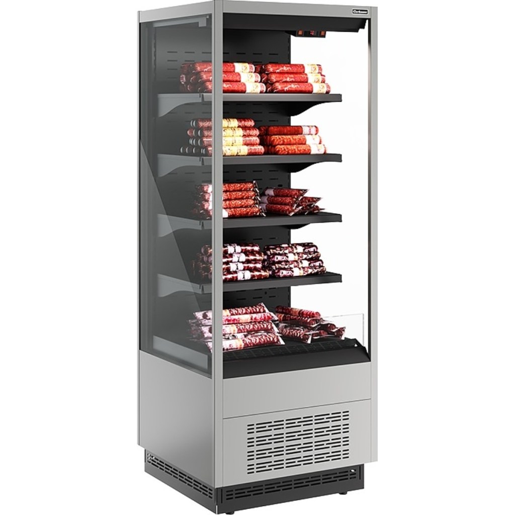 Горка холодильная Carboma FC20-07 VM 0,6-2 (версия 2.0) (9006-9005) применяется на предприятиях общественного питания и торговли для охлаждения, кратковременного хранения и предпродажной демонстрации напитков, мяса, птицы, полуфабрикатов, молочных и гастрономических изделий.