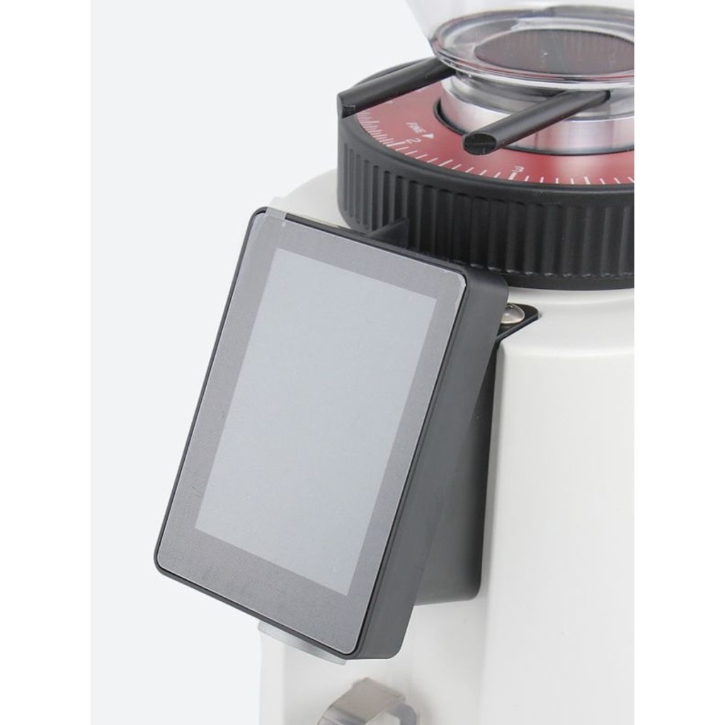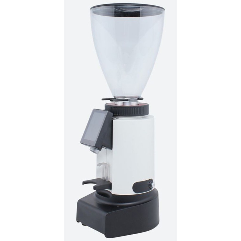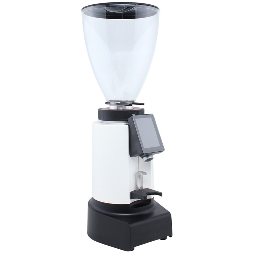 Кофемолка Leon 700 белая предназначена для профессионального и домашнего использования — в кофейнях, барах, кафе, на предприятиях общественного питания и дома. Модель оснащена воронкообразным бункером для кофейных зерен с крышкой и интегрированной ручкой, сенсорным дисплеем управления с наклонным расположением, дозатором и боковым выключателем. Корпус выполнен из прочного материала с белой поверхностью, жернова — из высококачественной закаленной стали, крышка — из черного пластика.