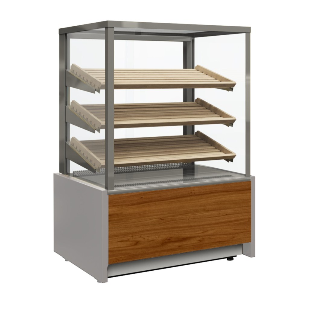Carboma KC70 N 1,3-2 Light Паттерн (0107 Ольха) хлебная, без стекла — удобная и функциональная витрина с открытым фронтом, предназначенная для быстрой выкладки хлебобулочных изделий. Прочная конструкция, эффективная подсветка и эргономичный дизайн делают её отличным выбором для торговли в условиях высокой проходимости и самообслуживания.