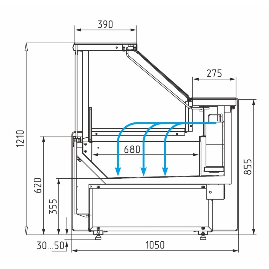 Отдельностоящие витрины приобретаются только с боковинами. При установке нескольких витрин с одинаковым температурным режимом в линию достаточно заказать две боковины на всю линию.