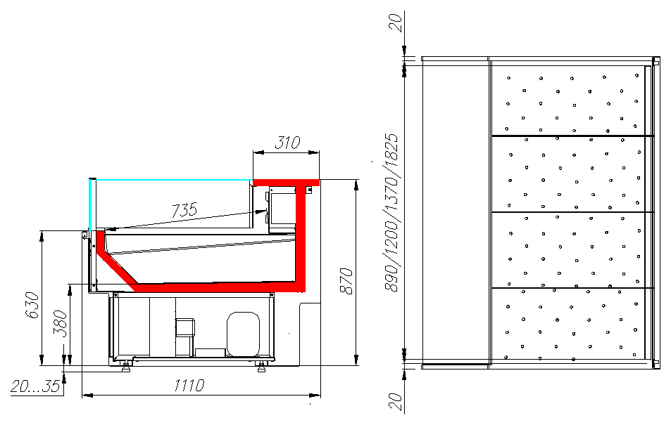 • Глубина выкладки — 735 мм, потребляемая мощность — 8,2 кВт/сутки;