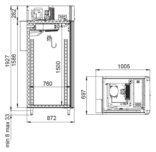 Каталог оборудования Холодильное оборудованиеШкафы холодильныеСпециализированные холодильные шкафыШкаф холодильный для вызревания мяса Polair CS107 Meat черный, со стеклом (Тип 2) Шкаф холодильный для вызревания мяса Polair CS107 Meat черный, со стеклом (Тип 2) Код товара: 062-633 Поделиться: WhatsAppTelegram СравнитьДобавить в КПВ избранное 0 392 700 ₽ В корзину 0 шт Под заказСамовывоз сегодня бесплатно Взять в кредит Купить в лизинг Получить консультацию в WhatsApp Описание Характеристики Отзывы 0 Инструкции 5 Шкаф холодильный для вызревания мяса Polair CS107 Meat черный, со стеклом (Тип 2) предназначен для создания оптимальных условий хранения и дозревания мяса на предприятиях общественного питания и торговли. Монолитный цельнозаливной корпус выполнен снаружи и на двери из окрашенной стали, внутри — из нержавеющей стали, дверь оснащена стеклопакетом. Оборудование рассчитано на работу при температуре окружающей среды до 40 °С. Особенности: Верхнее расположение агрегата для эффективного распределения холода Многофункциональная русифицированная панель управления с дисплеем диагональю 5" Возможность создания и сохранения собственных программ в памяти электронного блока Четыре перфорированные полки для удобного размещения продукции Встроенный ультразвуковой увлажнитель (требуется подключение к системе очищенной воды и централизованной канализации) UV-лампа для обеззараживания воздуха, обеспечивающая санитарную безопасность Распашная дверь с заливной теплоизоляцией и сменным уплотнителем с магнитной вставкой Встроенная удобная ручка Отключаемая внутренняя LED-подсветка Штампованное углубление в дне корпуса для удобства уборки Педаль для бесконтактного открывания двери Максимальная нагрузка на полку — 40 кг Толщина стенок корпуса — 43 мм Polair CS107 Meat черный, со стеклом (Тип 2) — это надежный и функциональный холодильный шкаф, который обеспечивает стабильные и комфортные условия для хранения и дозревания мяса. Высококачественные материалы корпуса и дверей, продвинутые системы увлажнения и обеззараживания воздуха, а также удобное управление позволяют значительно повысить качество продукции и эффективность работы предприятий пищевой отрасли.Изображение товара, представленного на фото, может отличаться от его фактического вида. Показать все Габаритные размеры697×1005×1960 ммДиапазон рабочей температурыот -2 до +30 °CДлина697 ммШирина1005 ммВысота1960 ммОбъём700 лКол-во дверей1 Тип двериСтеклянная Количество полок4 штДопустимая нагрузка на полку40 кгУровень влажностиот 60 до 95 %Холодильный агрегатВстроенный Тип оттайкиАвтоматическая Тип охлажденияДинамическое ПодсветкаЕсть UV-лампаЕсть ХладагентR290 Вес нетто160 кгВес брутто190 кгБрендPolairВсе специализированные холодильные шкафы Из нержавейкиВсе специализированные холодильные шкафы Стеклянная дверь Оставить отзыв Еще никто не оставил отзыв на этот товар Схема POLAIR CS107-Meat.jpgИнструкция на POLAIR CS107-Meat.pdfБрошюра на POLAIR CS107-Meat.pdfДекларация о соответствии.pdfСертификат соответствия.pdf Похожие товары Перейти в каталог Под заказ 391 000 ₽ Шкаф холодильный для вызревания мяса Polair CS107 Meat (Тип 2) В наличии 403 670 ₽ Шкаф холодильный для хлебопекарных производств Polair CS107 Bakery Br (Тип 2) Под заказ 373 915 ₽ Шкаф холодильный для вызревания салями Polair CS107 Salami черный, со стеклом Под заказ 390 915 ₽ Шкаф холодильный для вызревания салями Polair CS107 Salami 