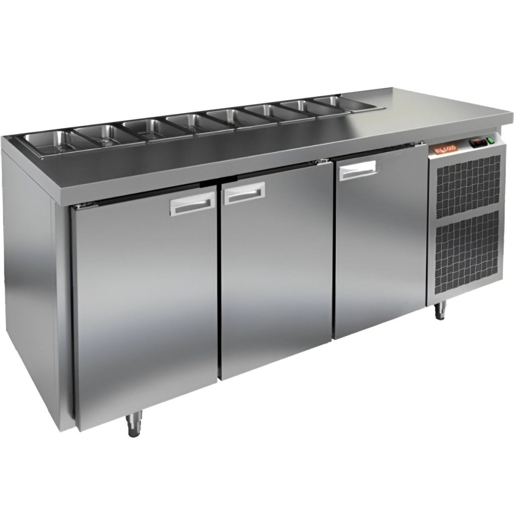 Каталог оборудования Холодильное оборудованиеСтолы охлаждаемыеСтолы холодильные для салатовСтол холодильный для салатов HiCold SL1-111SN (1/3) О без крышки Стол холодильный для салатов HiCold SL1-111SN (1/3) О без крышки Код товара: 064-522 Поделиться: WhatsAppTelegram СравнитьДобавить в КПВ избранное 0 163 162 ₽ В корзину 0 шт Под заказСамовывоз сегодня бесплатно Взять в кредит Купить в лизинг Получить консультацию в WhatsApp Описание Характеристики Отзывы 0 Инструкции 2 Стол холодильный для салатов HiCold SL1-111SN (1/3) О без крышки предназначен для предприятий общественного питания и торговли. Он обеспечивает хранение и подготовку ингредиентов для пиццы, салатов и других блюд, а также охлаждение и кратковременное хранение скоропортящихся продуктов. Модель сочетает рабочую поверхность и холодильный объем, позволяя повару иметь все необходимые компоненты под рукой. Корпус и столешница выполнены из нержавеющей стали, обеспечивая надежность и долговечность. Особенности: Динамическая система охлаждения — равномерное распределение температуры внутри холодильного объема. Автоматическая оттайка — упрощает уход за оборудованием. Электронная панель управления — точная настройка температуры и режимов работы. 3 вместительные внутренние полки формата GN 1/1 — удобное хранение ингредиентов. Автоматические доводчики дверей с фиксатором открытого положения — комфорт и безопасность работы. Легкозаменяемые магнитные уплотнители — простота обслуживания. Открытая агрегатная часть — облегчает доступ для обслуживания. Регулируемые по высоте ножки — адаптация к рабочей поверхности. Столешница без борта и без крышки, толщина столешницы и теплоизоляции 50 мм — надежная защита и удобство работы. Размер полки: 430×320мм (GN 1/1) Максимальная глубина гастроемкостей: 100 мм HiCold SL1-111SN (1/3) О без крышки — многофункциональный и надежный стол для профессиональной кухни. Обеспечивает удобство работы, эффективное охлаждение и безопасное хранение продуктов. Мобильная модификация с колёсами позволяет легко перемещать стол, что делает его идеальным для ресторанов, кафе и пиццерий.Изображение товара, представленного на фото, может отличаться от его фактического вида. Показать все Габаритные размеры1835×600×850 ммДиапазон рабочей температурыот +2 до +10 °CРасположение агрегатаБоковое Материал столешницыНержавеющая Тип столаС дверьми Тип двериГлухая Объём435 лКоличество дверей3 штТип гастроемкостейGN 1/3 Размер полки430×320 ммНапряжение220 ВМощность0,46 кВтТип охлажденияДинамический Тип оттайкиАвтоматическая СтолешницаБез борта Вес нетто120 кгВес брутто183 кгБрендHicold Оставить отзыв Еще никто не оставил отзыв на этот товар Паспорт на HICOLD SL1-111SN О.pdfДекларация о соответствии.pdf Ранее просмотрено В наличии 140 122 ₽ Стол холодильный для салатов HiCold SL1-11GN (1/3) без крышки Под заказ 260 092 ₽ Стол холодильный для салатов HiCold SL1-222GN (1/3) с крышкой Под заказ 209 962 ₽ Стол холодильный для салатов HiCold SL1-133GN (1/3) с крышкой Под заказ 140 482 ₽ Стол холодильный для салатов HiCold SL2-11GN (1/6) О без крышки Под заказ 255 412 ₽ Стол холодильный для салатов HiCold SL1-222GN (1/3) без крышки