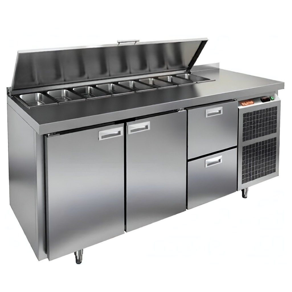 Каталог оборудования Холодильное оборудованиеСтолы охлаждаемыеСтолы холодильные для салатовСтол холодильный для салатов HiCold SL1-112GN (1/3) с крышкой Стол холодильный для салатов HiCold SL1-112GN (1/3) с крышкой Код товара: 064-841 Поделиться: WhatsAppTelegram СравнитьДобавить в КПВ избранное 0 198 892 ₽ В корзину 0 шт Под заказСамовывоз сегодня бесплатно Взять в кредит Купить в лизинг Получить консультацию в WhatsApp Описание Характеристики Отзывы 0 Инструкции 2 Стол холодильный для салатов HiCold SL1-112GN (1/3) предназначен для использования на предприятиях общественного питания и торговли. Он объединяет рабочую поверхность и охлаждаемый отсек, что делает его удобным решением для хранения, охлаждения и подготовки ингредиентов при приготовлении салатов, пиццы и других блюд. Такая конструкция позволяет повару работать быстрее и эффективнее, так как все необходимые продукты находятся под рукой. Корпус и столешница выполнены из прочной нержавеющей стали, устойчивой к коррозии и легко поддающейся санитарной обработке. Металлическая крышка защищает продукты от загрязнений и сохраняет их свежесть. Особенности модели: Электронная панель управления — точная настройка температурного режима. 2 глухие двери — удобный доступ к холодильному отсеку. 2 выдвижных ящика — быстрое размещение и замена продуктов. Вместимость салат-бара — до 8 гастроемкостей глубиной до 100 мм. Автоматические доводчики дверей с фиксацией в открытом положении. Легкозаменяемые магнитные уплотнители — надежная герметичность. Открытая агрегатная часть — быстрый доступ для обслуживания. Регулируемые по высоте ножки — устойчивость даже на неровном полу. Толщина столешницы, борта и теплоизоляции — 50 мм, что обеспечивает прочность и энергоэффективность конструкции. HiCold SL1-112GN (1/3) — практичное и удобное решение для профессиональной кухни, обеспечивающее удобную подготовку и хранение ингредиентов.Изображение товара, представленного на фото, может отличаться от его фактического вида. Показать все Габаритные размеры1835×700×850 ммДиапазон рабочей температурыот +2 до +10 °CРасположение агрегатаБоковое Материал столешницыНержавеющая Тип столаС дверьми и ящиками Тип двериГлухая Объём505 лКоличество дверей2 штТип гастроемкостейGN 1/3 Количество ящиков2 штРазмер полки530×325 ммНапряжение220 ВМощность0,46 кВтТип охлажденияДинамическое Тип оттайкиАвтоматическая СтолешницаС бортом Вес нетто120 кгВес брутто140 кгБрендHicold Оставить отзыв Еще никто не оставил отзыв на этот товар Паспорт на HICOLD SL1-112GN.pdfДекларация о соответствии.pdf Ранее просмотрено Под заказ 172 161 ₽ Стол холодильный для салатов HiCold SLE1-11111GN (1/3) О с крышкой