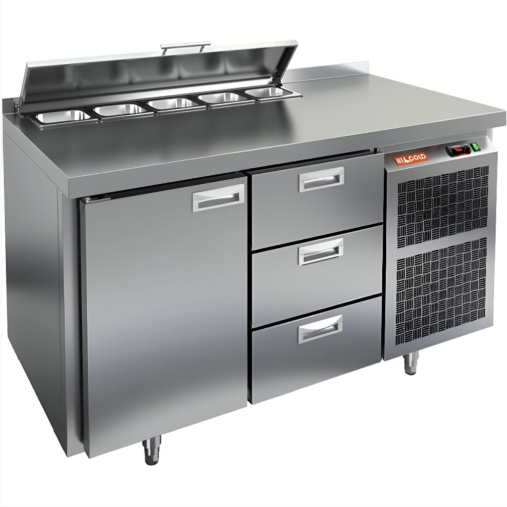 Каталог оборудования Холодильное оборудованиеСтолы охлаждаемыеСтолы холодильные для салатовСтол холодильный для салатов HiCold SL1-13GN (1/3) с крышкой Стол холодильный для салатов HiCold SL1-13GN (1/3) с крышкой Код товара: 064-852 Поделиться: WhatsAppTelegram СравнитьДобавить в КПВ избранное 0 189 622 ₽ В корзину 0 шт Под заказСамовывоз сегодня бесплатно Взять в кредит Купить в лизинг Получить консультацию в WhatsApp Описание Характеристики Отзывы 0 Стол холодильный для салатов HiCold SL1-13GN (1/3) с крышкой предназначен для профессиональных кухонь в общепите и торговле. Он совмещает рабочую поверхность и охлаждаемый объем, что ускоряет процесс приготовления и хранение ингредиентов. Корпус и столешница выполнены из нержавеющей стали — прочной, устойчивой к коррозии и простой в уходе. Металлическая крышка защищает продукты от загрязнений и сохраняет их свежесть. Особенности модели: Электронная панель управления — точная регулировка и стабильный температурный режим. Салат-бар на 5 гастроемкостей глубиной до 100 мм — быстрый доступ к ингредиентам. 1 глухая дверь — для хранения продуктов и тары. 2 выдвижных ящика — удобное размещение мелких или часто используемых ингредиентов. Автоматические доводчики дверей с фиксацией — комфорт при загрузке/выгрузке. Магнитные уплотнители — легко заменяются, обеспечивают герметичность и энергосбережение. Открытая агрегатная часть — простое обслуживание и доступ к компрессору. Регулируемые по высоте ножки — установка даже на неровном полу. Столешница толщиной 50 мм с бортом 50 мм — прочная рабочая поверхность и защита от загрязнений. Эффективная теплоизоляция 50 мм — сохранение холода и снижение энергозатрат. HiCold SL1-13GN (1/3) с крышкой — надежный салатный стол для удобной организации рабочего места и сохранения свежести продуктов на профессиональной кухне.Изображение товара, представленного на фото, может отличаться от его фактического вида. Показать все Габаритные размеры1390×700×850 ммДиапазон рабочей температурыот +2 до +10 °CРасположение агрегатаБоковое Материал столешницыНержавеющая Тип столаС дверьми и ящиками Тип двериГлухая Объём350 лКоличество дверей1 штТип гастроемкостейGN 1/3 Количество ящиков3 штРазмер полки530×325 ммНапряжение220 ВМощность0,22 кВтТип охлажденияДинамическое Тип оттайкиАвтоматическая СтолешницаС бортом Габариты в упаковке1550×850×1000 ммВес нетто105 кгВес брутто148 кгБрендHicold Оставить отзыв Еще никто не оставил отзыв на этот товар Ранее просмотрено Под заказ 305 182 ₽ Стол холодильный для салатов HiCold SL2-333GN (1/6) с крышкой Под заказ 143 722 ₽ Стол холодильный для салатов HiCold SL1-11GN (1/3) с крышкой Под заказ 197 991 ₽ Стол холодильный для салатов HiCold SL1-1111GN (1/3) с крышкой Под заказ 255 861 ₽ Стол холодильный для салатов HiCold SL2-222GN (1/6) без крышки В наличии 120 862 ₽ Стол холодильный для салатов HiCold SLE1-11GN (1/3) О без крышки