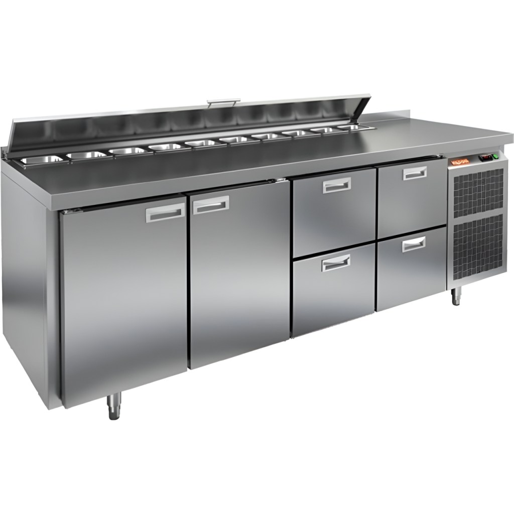 Каталог оборудования Холодильное оборудованиеСтолы охлаждаемыеСтолы холодильные для салатовСтол холодильный для салатов HiCold SL1-332GN (1/3) с крышкой Стол холодильный для салатов HiCold SL1-332GN (1/3) с крышкой Код товара: 064-851 Поделиться: WhatsAppTelegram СравнитьДобавить в КПВ избранное 0 290 692 ₽ В корзину 0 шт Под заказСамовывоз сегодня бесплатно Взять в кредит Купить в лизинг Получить консультацию в WhatsApp Описание Характеристики Отзывы 0 Инструкции 1 Стол холодильный для салатов HiCold SL1-332GN (1/3) предназначен для использования на предприятиях общественного питания и торговли. Он объединяет рабочую поверхность и охлаждаемый отсек, что делает его удобным решением для хранения, охлаждения и подготовки ингредиентов при приготовлении салатов, пиццы и других блюд. Такая конструкция позволяет повару работать быстрее и эффективнее, так как все необходимые продукты находятся под рукой. Корпус и столешница выполнены из прочной нержавеющей стали, устойчивой к коррозии и легко поддающейся санитарной обработке. Металлическая крышка защищает продукты от загрязнений и сохраняет их свежесть. Особенности модели: Электронная панель управления — точная настройка температурного режима. 8 выдвижных ящика — быстрое размещение и замена продуктов. Вместимость салат-бара — до 8 гастроемкостей глубиной до 100 мм. Автоматические доводчики — комфорт при загрузке/выгрузке. Легкозаменяемые магнитные уплотнители — надежная герметичность. Открытая агрегатная часть — быстрый доступ для обслуживания. Регулируемые по высоте ножки — устойчивость даже на неровном полу. Толщина столешницы, борта и теплоизоляции — 50 мм, что обеспечивает прочность и энергоэффективность конструкции. HiCold SL1-332GN (1/3) — практичное и удобное решение для профессиональной кухни, обеспечивающее удобную подготовку и хранение ингредиентов.Изображение товара, представленного на фото, может отличаться от его фактического вида. Показать все Габаритные размеры1835×700×850 ммДиапазон рабочей температурыот +2 до +10 °CРасположение агрегатаБоковое Материал столешницыНержавеющая Тип столаС дверьми и ящиками Тип двериГлухая Объём505 лКоличество дверей2 штТип гастроемкостейGN 1/3 Количество ящиков6 штРазмер полки530×325 ммНапряжение220 ВМощность0,46 кВтТип охлажденияДинамическое Тип оттайкиАвтоматическая СтолешницаС бортом Габариты в упаковке2000×850×1000 ммВес нетто120 кгВес брутто140 кгБрендHicold Оставить отзыв Еще никто не оставил отзыв на этот товар Декларация о соответствии.pdf Ранее просмотрено Под заказ 168 382 ₽ Стол холодильный для салатов HiCold SLE2-1111GN (1/6) О без крышки Под заказ 243 982 ₽ Стол холодильный для салатов HiCold SL2-321GN (1/6) с крышкой Под заказ 208 792 ₽ Стол холодильный для салатов HiCold SLE1-122GN (1/3) О с крышкой Под заказ 123 742 ₽ Стол холодильный для салатов HiCold SLE1-11SN (1/3) О с крышкой Под заказ 198 892 ₽ Стол холодильный для салатов HiCold SL1-112GN (1/3) с крышкой Под заказ 172 161 ₽ Стол холодильный для салатов HiCold SLE1-11111GN (1/3) О с крышкой
