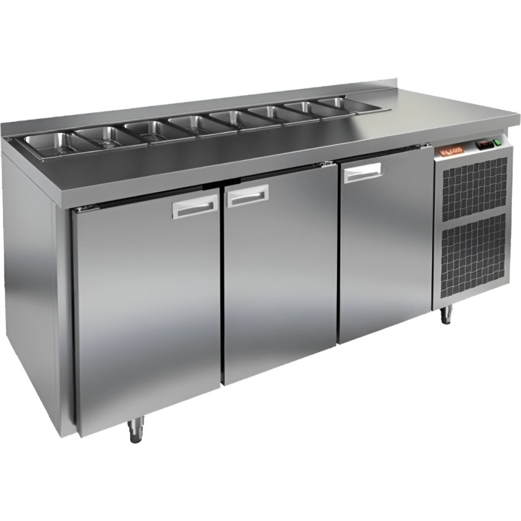 Каталог оборудования Холодильное оборудованиеСтолы охлаждаемыеСтолы холодильные для салатовСтол холодильный для салатов HiCold SL2-111SN (1/6) без крышки Стол холодильный для салатов HiCold SL2-111SN (1/6) без крышки Код товара: 064-807 Поделиться: WhatsAppTelegram СравнитьДобавить в КПВ избранное 0 163 612 ₽ В корзину 0 шт Под заказСамовывоз сегодня бесплатно Взять в кредит Купить в лизинг Получить консультацию в WhatsApp Описание Характеристики Отзывы 0 Инструкции 2 Стол холодильный для салатов HiCold SL2-111SN (1/6) без крышки применяется на предприятиях общественного питания и торговли для хранения ингредиентов, используемых при приготовлении салатов, пиццы и других блюд. Совмещает рабочую поверхность и охлаждаемый отсек, что упрощает работу персонала. Корпус и столешница выполнены из прочной и гигиеничной нержавеющей стали. Столешница с бортом предотвращает скатывание и проливание ингредиентов, обеспечивая аккуратность рабочего пространства. Важно: на фото представлена аналогичная модель с крышкой. Особенности: Электронная панель управления — точная настройка температуры и режимов. 3 полки формата GN 1/1 — вместительное внутреннее хранение. Салат-бар на 8 гастроемкостей — удобная организация ингредиентов. Автоматические доводчики дверей — комфортная эксплуатация. Съёмные магнитные уплотнители — простота замены и герметичность. Открытая агрегатная часть — лёгкий доступ к оборудованию. Регулируемые ножки — установка на любом покрытии. Гастроемкости до 100 мм глубиной, столешница и бортик — по 50 мм, теплоизоляция — 50 мм. HiCold SL2-111SN без крышки — удобный, вместительный и надёжный стол для профессиональной кухни. Идеален для быстрого доступа к охлаждённым ингредиентам в процессе приготовления.Изображение товара, представленного на фото, может отличаться от его фактического вида. Показать все Габаритные размеры1835×600×850 ммДиапазон рабочей температурыот +2 до +10 °CРасположение агрегатаБоковое Материал столешницыНержавеющая Тип столаС дверьми Тип двериГлухая Объём435 лКоличество дверей3 штТип гастроемкостейGN 1/6 Размер полки430×325 ммНапряжение220 ВМощность0,46 кВтТип охлажденияДинамическое Тип оттайкиАвтоматическая СтолешницаС бортом Вес нетто120 кгВес брутто184 кгБрендHicold Оставить отзыв Еще никто не оставил отзыв на этот товар Паспорт на HICOLD SL2-111SN.pdfДекларация о соответствии.pdf Ранее просмотрено Под заказ 319 402 ₽ Стол холодильный для салатов HiCold SLE3-2222GN М без крышки