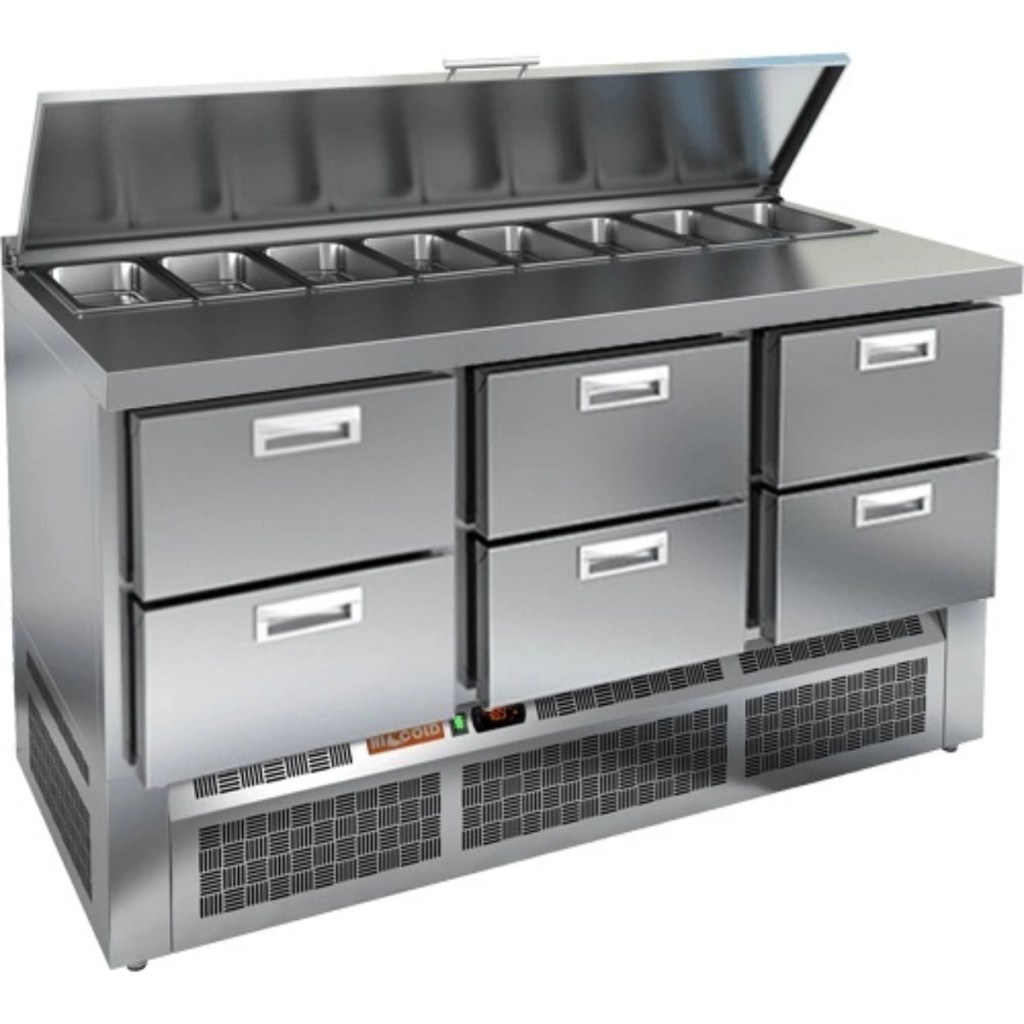 Каталог оборудования Холодильное оборудованиеСтолы охлаждаемыеСтолы холодильные для салатовСтол холодильный для салатов HiCold SLE1-222SN (1/3) с крышкой Стол холодильный для салатов HiCold SLE1-222SN (1/3) с крышкой Код товара: 064-906 Поделиться: WhatsAppTelegram СравнитьДобавить в КПВ избранное 0 238 942 ₽ В корзину 0 шт Под заказСамовывоз сегодня бесплатно Взять в кредит Купить в лизинг Получить консультацию в WhatsApp Описание Характеристики Отзывы 0 Стол холодильный для салатов HiCold SLE1-222SN (1/3) с крышкой предназначен для использования на предприятиях общественного питания и торговли. Он служит для хранения и обработки ингредиентов, используемых при приготовлении салатов, пиццы, закусок и других блюд. Также стол подходит для охлаждения и кратковременного хранения скоропортящихся продуктов и напитков. Модель сочетает в себе прочную рабочую поверхность и охлаждаемый внутренний объем, что упрощает процесс приготовления: все необходимые ингредиенты всегда под рукой. Корпус и столешница изготовлены из нержавеющей стали, устойчивой к воздействию влаги, механическим повреждениям и легко поддающейся очистке. Металлическая крышка защищает продукты от загрязнений и сохраняет их свежесть. Особенности: Электронная панель управления — обеспечивает точное и удобное регулирование температуры внутри камеры. 6 выдвижных ящиков — позволяют удобно распределить ингредиенты и оптимально организовать пространство для хранения продуктов. Салат-бар вмещает 8 гастроемкостей — обеспечивает быстрый доступ к разнообразным ингредиентам. Автоматические доводчики дверей с фиксатором — улучшают эргономику и предотвращают случайное захлопывание. Магнитные уплотнители — легко заменяются и обеспечивают хорошую теплоизоляцию. Открытая агрегатная часть — облегчает доступ к элементам системы охлаждения для технического обслуживания. Регулируемые ножки — позволяют установить стол на неровной поверхности. Максимальная глубина гастроемкостей — 100 мм — подходит для хранения различных типов продуктов. Толщина столешницы — 50 мм — обеспечивает надежность и устойчивость при работе. Высота борта — 50 мм — защищает от проливания и загрязнений. Теплоизоляция толщиной 50 мм — способствует поддержанию стабильной температуры и экономии энергии. HiCold SLE1-222SN (1/3) с крышкой — это практичное и многофункциональное решение для профессиональной кухни. Благодаря вместительности, продуманной конструкции и надежной термоизоляции, стол позволяет организовать эффективное рабочее пространство и обеспечивает сохранность свежести продуктов в течение всего рабочего дня. Изображение товара, представленного на фото, может отличаться от его фактического вида. Показать все Габаритные размеры1485×600×850 ммДиапазон рабочей температурыот +2 до +10 °CРасположение агрегатаНижнее Материал столешницыНержавеющая Тип столаС ящиками Объём320 лТип гастроемкостейGN 1/3 Количество ящиков6 штНапряжение220 ВМощность0,2 кВтТип охлажденияДинамическое Тип оттайкиАвтоматическая СтолешницаС бортом Габариты в упаковке1700×750×1080 ммВес нетто105 кгВес брутто150 кгБрендHicold Оставить отзыв Еще никто не оставил отзыв на этот товар Ранее просмотрено Под заказ 15 111 ₽ Ванна моечная с бортом МХМ МБ-1-0,45-0,8/0,8 (AISI 430, t=0,6) Под заказ 163 612 ₽ Стол холодильный для салатов HiCold SL1-111GN (1/3) без крышки Под заказ 151 462 ₽ Стол холодильный для сала