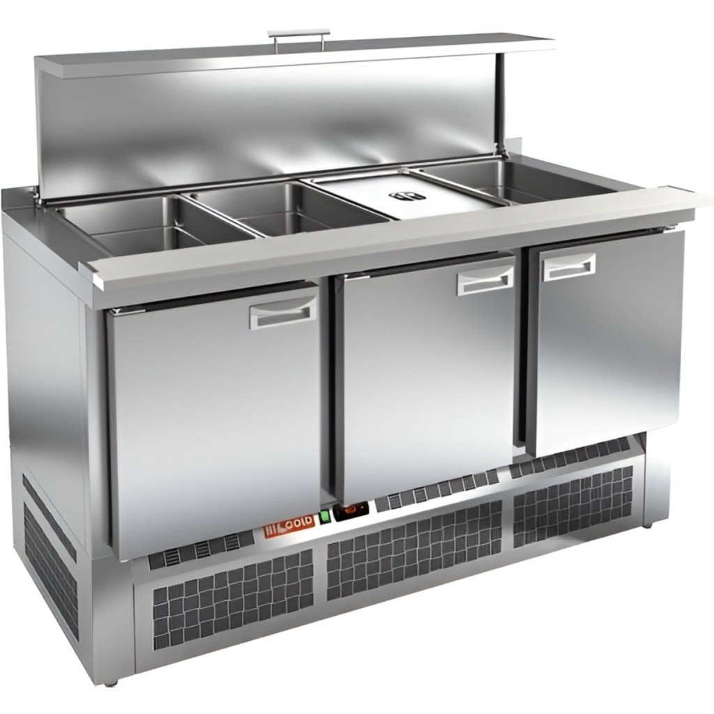 HiCold SLE3-111GN полипропилен, с крышкой — надёжный и удобный в эксплуатации салатный стол, который обеспечит оптимальные условия хранения ингредиентов и повысит эффективность работы кухни. Он подойдёт для любого формата заведений общественного питания, где требуется быстрый доступ к охлаждённым продуктам.