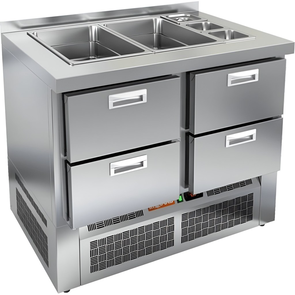 Каталог оборудования Холодильное оборудованиеСтолы охлаждаемыеСтолы холодильные для салатовСтол холодильный для салатов HiCold SLE3-22GN без крышки Стол холодильный для салатов HiCold SLE3-22GN без крышки Код товара: 064-957 Поделиться: WhatsAppTelegram СравнитьДобавить в КПВ избранное 0 126 621 ₽ В корзину 0 шт Под заказСамовывоз сегодня бесплатно Взять в кредит Купить в лизинг Получить консультацию в WhatsApp Описание Характеристики Отзывы 0 Стол холодильный для салатов HiCold SLE3-2GN без крышки предназначен для использования на предприятиях общественного питания и торговли. Он сочетает в себе функции охлаждения и хранения ингредиентов, используемых при приготовлении салатов, закусок, сэндвичей и других блюд, требующих кратковременного поддержания температуры. Модель обеспечивает удобный доступ к продуктам и позволяет повару работать максимально эффективно. Корпус и столешница изготовлены из нержавеющей стали, что гарантирует долговечность конструкции, устойчивость к коррозии и соответствие санитарным нормам. Особенности модели: Электронная панель управления позволяет точно настраивать температурный режим 2 выдвижных ящиков обеспечивают удобное хранение ингредиентов и упрощают организацию рабочего пространства Вместимость салат-бара — 1 гастроемкость формата GN 1/1 и 3 гастроемкости формата GN1/9 Поддерживается использование гастроемкостей глубиной до 100 мм Двери оснащены автоматическими доводчиками с фиксацией в открытом положении Легкозаменяемые магнитные уплотнители обеспечивают герметичность и простоту обслуживания Открытая агрегатная часть упрощает доступ для сервисного обслуживания Регулируемые по высоте ножки позволяют адаптировать стол под любую рабочую поверхность Толщина столешницы и теплоизоляции составляет 50 мм, что гарантирует прочность и энергоэффективность Наличие борта повышает гигиеничность работы и облегчает поддержание чистоты на кухне. HiCold SLE3-2GN без крышки — это надёжный и практичный салатный стол, который сочетает в себе охлаждаемый отсек и удобную рабочую зону. Модель идеально подходит для интенсивной эксплуатации в профессиональных кухнях, обеспечивая быстрое обслуживание и надёжное хранение ингредиентов.Изображение товара, представленного на фото, может отличаться от его фактического вида. Показать все Габаритные размеры565×700×850 ммДиапазон рабочей температурыот +2 до +10 °CРасположение агрегатаНижнее Материал столешницыНержавеющая Тип столаС ящиками Объём110 лТип гастроемкостейGN 1/1, GN1/9 Количество ящиков2 штНапряжение220 ВМощность0,2 кВтТип охлажденияДинамическое Тип оттайкиАвтоматическая СтолешницаС бортом Габариты в упаковке800×850×1080 ммВес нетто58 кгВес брутто95 кгБрендHicold Оставить отзыв Еще никто не оставил отзыв на этот товар Ранее просмотрено Под заказ 15 990 ₽ Ванна моечная с бортом МХМ МБ-2-0,3-0,53/1,01 (AISI 430, t=0,6) Под заказ 867 419 ₽ Котел пищеварочный Аbat КПЭМ-200-ОМ2 со сливным краном