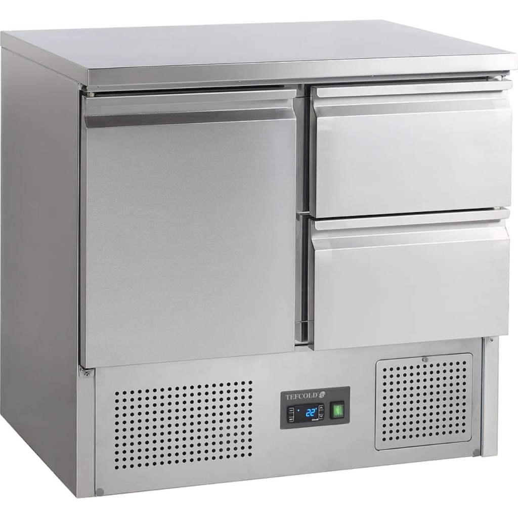TEFCOLD SA912 — компактный и надёжный холодильный стол для профессиональных кухонь и предприятий общественного питания. Он сочетает в себе удобство работы, эффективное охлаждение и высокую гигиеничность, обеспечивая сохранность продуктов и комфорт при приготовлении салатов и других блюд.
