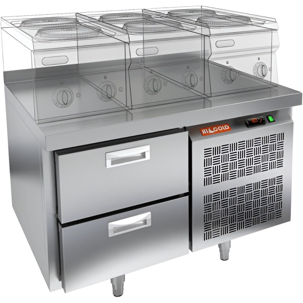 Каталог оборудования Холодильное оборудованиеСтолы охлаждаемыеСтолы холодильные под тепловое оборудованиеСтол морозильный HiCold GN 2/BT LT под тепловое оборудование Стол морозильный HiCold GN 2/BT LT под тепловое оборудование Код товара: 062-414 Поделиться: WhatsAppTelegram СравнитьДобавить в КПВ избранное 0 135 441 ₽ В корзину 0 шт Под заказСамовывоз сегодня бесплатно Взять в кредит Купить в лизинг Получить консультацию в WhatsApp Описание Характеристики Отзывы 0 Инструкции 2 Стол морозильный HiCold GN 2/BT LT под тепловое оборудование предназначен для хранения предварительно замороженных продуктов, обработки ингредиентов в процессе приготовления блюд, а также размещения теплового оборудования. Идеально подходит для использования на предприятиях общественного питания и торговли. Модель оснащена встроенным компрессорным агрегатом с боковым расположением, удобной столешницей с бортом, морозильной камерой с двумя выдвижными ящиками и современной электронной панелью управления. Корпус и столешница выполнены из прочной нержавеющей стали, что обеспечивает долговечность и лёгкость в уходе. Особенности: Система динамического охлаждения, обеспечивающая равномерное распределение холодного воздуха благодаря принудительной вентиляции. Электронный контроллер с настройкой температуры, цифровой индикацией температуры во внутреннем объёме и автоматической системой оттайки. Легкозаменяемое магнитное уплотнение, обеспечивающее герметичное закрытие и простоту обслуживания. Регулируемые по высоте высокие опоры, позволяющие компенсировать неровности пола и обеспечить устойчивое положение стола. Интегрированные в фронт ящиков рукоятки, способствующие экономии пространства и удобству эксплуатации. Лёгкость очистки и дезинфекции всех поверхностей, что особенно важно для соблюдения санитарных норм. Эргономичный дизайн, обеспечивающий комфорт и удобство работы персонала. Hicold GN 2/BT LT — это надёжное и современное решение для профессиональной кухни, обеспечивающее равномерное охлаждение, удобное хранение замороженных продуктов и экономию рабочего пространства.Изображение товара, представленного на фото, может отличаться от его фактического вида. Показать все Габаритные размеры900×700×675 ммДиапазон рабочей температурыот -18 до -10 °CМатериал столешницыНержавеющая Расположение агрегатаБоковое Объём110 лТип столаС ящиками Количество ящиков2 штНапряжение220 ВМощность0,255 кВтТип охлажденияДинамический Тип оттайкиАвтоматическая СтолешницаС бортом Вес нетто67 кгВес брутто74 кгБрендHicold Оставить отзыв Еще никто не оставил отзыв на этот товар Паспорт на HICOLD GN 2BT LT.pdfДекларация о соответствии.pdf Ранее просмотрено Под заказ 128 871 ₽ Стол морозильный HiCold GN 11/BT LT SH под тепловое оборудование Под заказ 45 000 ₽ Витрина холодильная настольная Carboma A87 SM 1,0-1 (ВХС-1,0 Арго) (цвет по схеме стандарт) В наличии 170 413 ₽ Витрина холодильная кондитерская TEFCOLD LPD900C/BLACK черная/нерж Под заказ 98 800 ₽ Витрина кондитерская Carboma D4 VM 120-2 (R120Cвр) цвет по схеме стандарт