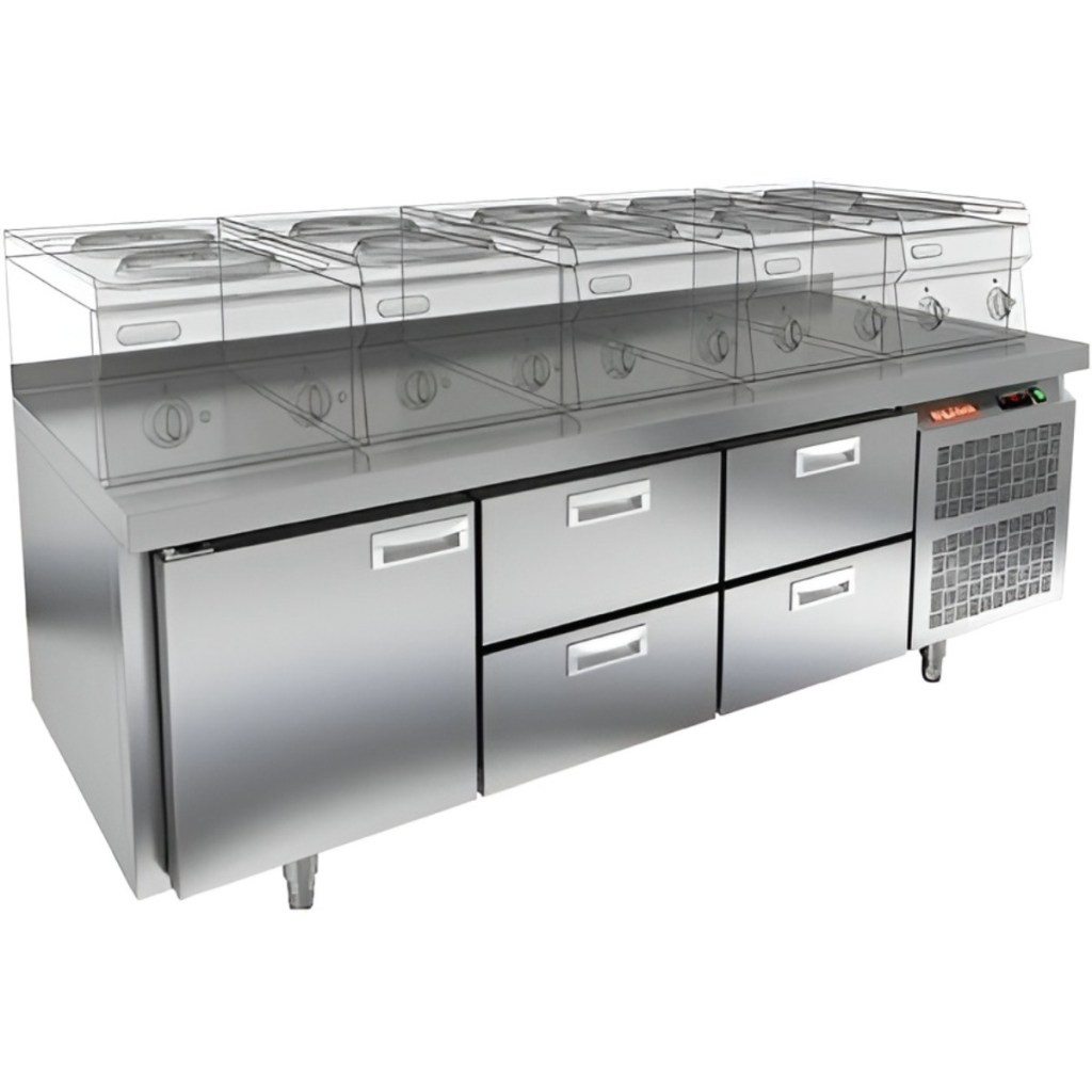 Каталог оборудования Холодильное оборудованиеСтолы охлаждаемыеСтолы холодильные под тепловое оборудованиеСтол охлаждаемый HiCold SN 122/TN LT под тепловое оборудование Стол охлаждаемый HiCold SN 122/TN LT под тепловое оборудование Код товара: 065-547 Поделиться: WhatsAppTelegram СравнитьДобавить в КПВ избранное 0 193 042 ₽ В корзину 0 шт Под заказСамовывоз сегодня бесплатно Взять в кредит Купить в лизинг Получить консультацию в WhatsApp Описание Характеристики Отзывы 0 Инструкции 2 Стол охлаждаемый HiCold SN 122/TN LT SH под тепловое оборудование предназначен для обработки ингредиентов и временного хранения скоропортящихся продуктов и напитков на предприятиях общественного питания и торговли. Устройство совмещает функции рабочей поверхности и холодильной камеры. Столешница рассчитана на установку теплового оборудования: под рабочей поверхностью встроен ДСП-лист, который укрепляет конструкцию и препятствует проникновению тепла внутрь. Такое решение обеспечивает дополнительную жесткость, позволяет рационально использовать рабочее пространство и повышает эффективность работы на кухне. Особенности: 1 распашная дверь — обеспечивает удобный доступ к внутреннему пространству. 4 выдвижных ящика — обеспечивают удобный доступ к продуктам и инвентарю Автоматические доводчики дверей с фиксатором открытого положения повышают эргономику и способствуют сохранению холода. Легкозаменяемые магнитные уплотнители обеспечивают плотное прилегание дверей и лёгкость в обслуживании. Открытая агрегатная часть упрощает доступ к компрессору при техническом обслуживании. Регулируемые по высоте низкие ножки — удобная установка и устойчивость стола даже на неровной поверхности. Толщина столешницы — 50 мм обеспечивает прочность рабочей поверхности. Высота борта — 50 мм предотвращает падение продуктов и инвентаря. Толщина теплоизоляции — 50 мм способствует энергоэффективности и стабильному температурному режиму. HiCold SN 122/TN LT SH — это надёжное и удобное оборудование, сочетающее охлаждение и рабочее пространство. Благодаря продуманной конструкции и совместимости с гастроемкостями GN 1/1, стол станет практичным решением для кухни любого профессионального уровня.Изображение товара, представленного на фото, может отличаться от его фактического вида. Показать все Габаритные размеры1835×600×675 ммДиапазон рабочей температурыот -2 до +10 °CМатериал столешницыНержавеющая Расположение агрегатаБоковое Объём320 лТип столаС дверьми и ящиками Тип двериГлухая Количество дверей1 штКоличество ящиков4 штРазмер полки430×325 ммНапряжение220 ВМощность0,46 кВтТип охлажденияДинамический Тип оттайкиАвтоматическая СтолешницаС бортом Габариты в упаковке1935×740×970 ммВес нетто162 кгВес брутто182 кгБрендHicold Оставить отзыв Еще никто не оставил отзыв на этот товар Паспорт на HICOLD SN 122TN LT SH.pdfДекларация о соответствии.pdf Похожие товары Перейти в каталог В наличии 128 777 ₽ Стол морозильный Cooleq GN3200BT с бортом Под заказ 166 404 ₽ Стол морозильный Abat СХН-70-02 без борта (дверь, дверь, дверь) С этим товаром покупают В наличии 140 675 ₽ Шкаф холодильный универсальный Polair CV 110-S Под заказ 76 010 ₽ Газовый лавовый гриль Abat ГЛК-40Н Ранее просмотрено Под заказ 193 492 ₽ Стол охлаждаемый HiCold GN 122/TN LT под тепловое оборудование