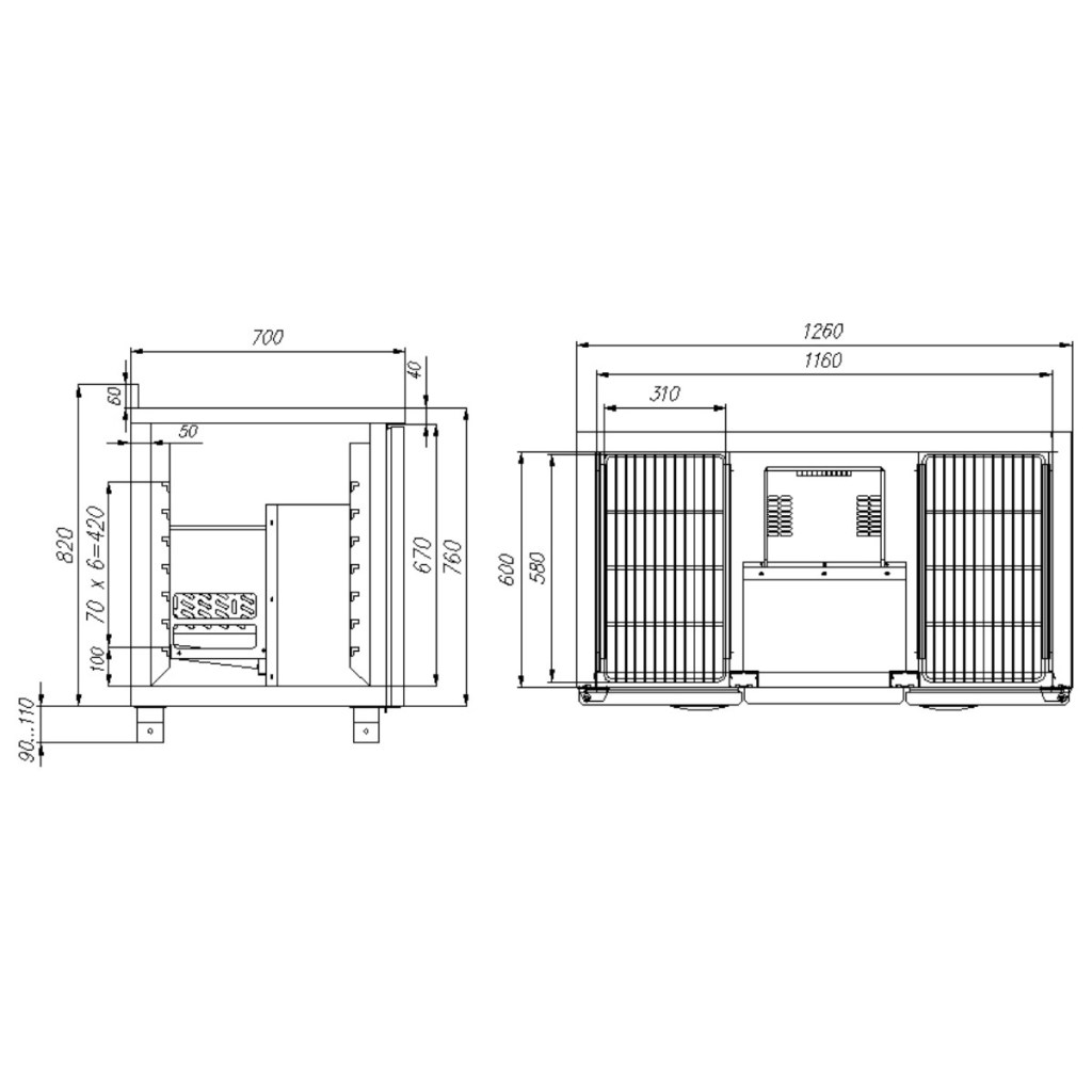Каталог оборудования Холодильное оборудованиеСтолы охлаждаемыеСтолы холодильные среднетемпературныеСтол холодильный среднетемпературный Carboma T70 M2-1 (2GN/NT Полюс) без борта (9006-1 корпус серый 2 двери) Стол холодильный среднетемпературный Carboma T70 M2-1 (2GN/NT Полюс) без борта (9006-1 корпус серый 2 двери) Код товара: 064-373 Поделиться: WhatsAppTelegram СравнитьДобавить в КПВ избранное 0 104 490 ₽ В корзину 0 шт Под заказСамовывоз сегодня бесплатно Взять в кредит Купить в лизинг Получить консультацию в WhatsApp Описание Характеристики Отзывы 0 Инструкции 1 Стол холодильный среднетемпературный Carboma T70 M2-1 (2GN/NT Полюс) без борта (9006-1 корпус серый 2 двери) — профессиональное оборудование для предприятий общественного питания и торговли. Предназначен для раскатки теста, подготовки ингредиентов, охлаждения и кратковременного хранения скоропортящихся продуктов и напитков. Модель оснащена двумя распашными дверями, четырьмя полками и регулируемыми ножками высотой от 90 до 110 мм. Цельнозаливной корпус из окрашенной оцинкованной стали серого цвета с теплоизоляцией из пенополиуретана обеспечивает стабильное удержание температуры и высокую прочность конструкции. Дверцы выполнены из металла. Дверцы выполнены из металла. Столешница без борта облегчает установку стола в единую линию кухонного оборудования. Особенности: Динамическая система охлаждения — равномерное распределение температуры. Электронный блок управления — точный контроль параметров работы. Съёмный холодильный агрегат кассетного типа — удобство сервисного обслуживания. Хладагент R290 — экологичность и высокая эффективность. Выпариватель — предотвращает образование конденсата. Двухконтурный уплотнитель — надёжная герметичность дверей. Округлённые края дверей и плинтусов — безопасность персонала. Ширина полок 310 мм — оптимальная вместимость. Толщина корпуса 50 мм — прочность и надёжная теплоизоляция. Carboma T70 M2-1 (2GN/NT Полюс) без борта (9006-1 корпус серый 2 двери) — прочное и удобное решение для профессиональной кухни, обеспечивающее надёжное хранение продуктов и комфортную работу персонала.Изображение товара, представленного на фото, может отличаться от его фактического вида. Показать все Габаритные размеры1260×700×930 ммДиапазон рабочей температурыот 0 до +7 °CРасположение агрегатаПо центру Материал столешницыНержавеющая Тип столаС дверьми Тип двериГлухая Количество дверей2 штКоличество полок4 штРазмер полки310×580 ммКлиматический класс3 Напряжение220 ВМощность0,21 кВтРасход электроэнергии в сутки5 кВт/сутТип охлажденияДинамическое Тип оттайкиАвтоматическая ХладагентR290 СтолешницаБез борта Габариты в упаковке1400×860×1060 ммВес нетто100 кгВес брутто185 кгБрендПолюсВсе холодильные столы ПолюсВсе оцинкованные холодильные столы Все холодильные столы без борта Оставить отзыв Еще никто не оставил отзыв на этот товар Паспорт на Carboma T70 M2-1 9006-1.pdf Ранее просмотрено Под заказ 58 587 ₽ Дверь холодильная распашная одностворчатая НТ-РДО-900*2000/120 Под заказ 228 171 ₽ Стол морозильный низкотемпературный Polair TB3GN-222-G без столещницы Пульт в комплектеПод заказ 103 870 ₽ Сплит-система холодильная низкотемпературная Арктика СМH 212 (с зимним комплектом) Под заказ 195 245 ₽ Стол морозильный Abat СХН-70-02 без борта (дверь-стекло, дверь-стекло, дверь-стекло) Под заказ 195 387 ₽ Стол морозильный Abat СХН-70-02 с бортом (дверь-стекло, дверь-стекло, двер
