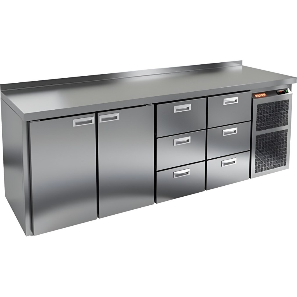 Каталог оборудования Холодильное оборудованиеСтолы охлаждаемыеСтолы холодильные среднетемпературныеСтол холодильный среднетемпературный HiCold BN 1133 BR2 TN Стол холодильный среднетемпературный HiCold BN 1133 BR2 TN Код товара: 062-319 Поделиться: WhatsAppTelegram СравнитьДобавить в КПВ избранное 0 275 031 ₽ В корзину 0 шт В наличииСамовывоз сегодня бесплатно Взять в кредит Купить в лизинг Получить консультацию в WhatsApp Описание Характеристики Отзывы 0 Стол холодильный среднетемпературный HiCold BN 1133 BR2 TN — это многофункциональное профессиональное оборудование, предназначенное для предприятий общественного питания и торговли. Он обеспечивает удобную поверхность для раскатки теста и подготовки продуктов, а также выполняет функцию охлаждаемого шкафа для кратковременного хранения скоропортящихся ингредиентов и напитков. Устройство оснащено удобной электронной панелью управления и выполнено из нержавеющей стали, что гарантирует долговечность и простоту в уходе. Комплектация: 2 полки размером 330×325 мм. Особенности модели: Надёжный компрессор от мирового производителя — стабильная и эффективная работа. Принудительная вентиляция — обеспечивает равномерное распределение холода во всём объёме камеры. Цельнозаливной корпус с теплоизоляцией 50 мм — сводит к минимуму потери холода, придаёт конструкции прочность. Автоматические дверные доводчики с фиксатором — для комфортного и безопасного использования. Магнитные уплотнители, которые легко заменить при необходимости — сохраняют герметичность. Регулируемые по высоте ножки — удобная установка на любой поверхности. Упрощённый доступ к агрегату — быстрое техническое обслуживание без лишних усилий. Толщина столешницы — 50 мм, высота борта — 50 мм — прочная и безопасная рабочая зона. Поддерживает работу при температуре окружающей среды от +12 до +37 °C. HiCold BN 1133 BR2 TN — это надёжный и функциональный холодильный стол, сочетающий в себе рабочую поверхность и охлаждаемое хранение. Он обеспечивает высокую производительность, удобство в эксплуатации и соответствует требованиям современной профессиональной кухни. Отличный выбор для кафе, ресторанов и пищевых производств.Изображение товара, представленного на фото, может отличаться от его фактического вида. Показать все Габаритные размеры2280×500×850 ммДиапазон рабочей температурыот -2 до +10 °CРасположение агрегатаБоковое Материал столешницыНержавеющая Тип столаС дверьми и ящиками Тип двериГлухая Объём530 лКоличество дверей2 штКоличество полок2 штКоличество ящиков6 штРазмер полки330×325 ммНапряжение220 ВМощность0,48 кВтТип охлажденияДинамический Тип оттайкиАвтоматическая СтолешницаС бортом Вес нетто145 кгВес брутто165 кгБрендHicoldВсе холодильные столы HicoldВсе нержавеющие холодильные столы Все холодильные столы с бортом Оставить отзыв Еще никто не оставил отзыв на этот товар Похожие товары Перейти в каталог Под заказ 79 911 ₽ Стол холодильный среднетемпературный HiCold GN 1/TN W Под заказ 104 947 ₽ Стол холодильный среднетемпературный Abat СХС-70 с бортом (дверь) С этим товаром покупают В наличии 96 390 ₽ Шкаф холодильный Полюс Carboma R560 В наличии 58 095 ₽ Витрина холодильная для ингредиентов HICOLD VRTU 1835 1/3 Ранее просмотрено В наличии 82 365 ₽ Витрина холодильная МХМ Илеть ВХС-1,8 new