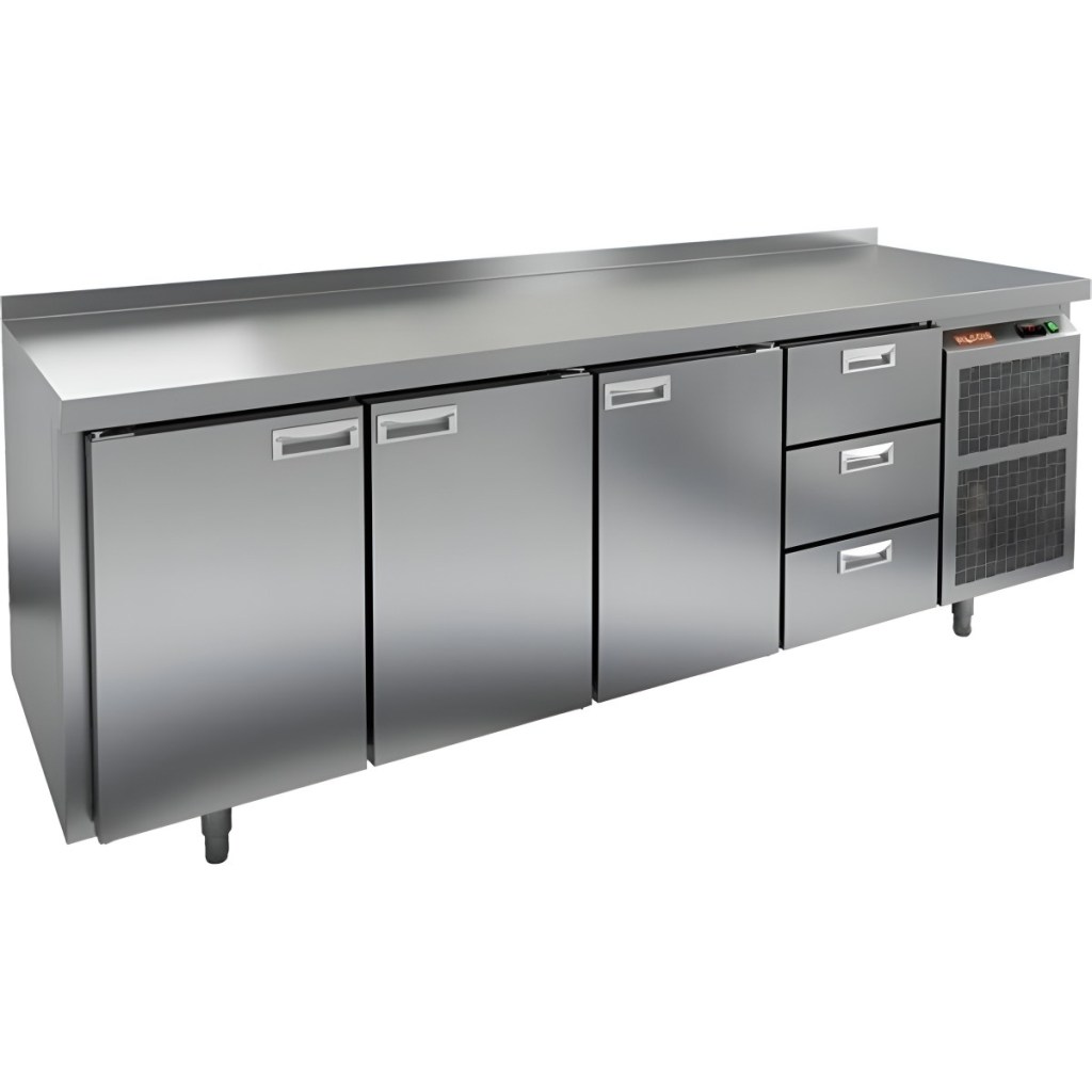 Каталог оборудования Холодильное оборудованиеСтолы охлаждаемыеСтолы холодильные среднетемпературныеСтол холодильный среднетемпературный HiCold GN 1113/TN Стол холодильный среднетемпературный HiCold GN 1113/TN Код товара: 001-328 Поделиться: WhatsAppTelegram СравнитьДобавить в КПВ избранное 0 213 291 ₽ В корзину 0 шт Под заказСамовывоз сегодня бесплатно Взять в кредит Купить в лизинг Получить консультацию в WhatsApp Описание Характеристики Отзывы 0 Инструкции 2 Стол холодильный среднетемпературный HiCold GN 1113/TN предназначен для подготовки ингредиентов и кратковременного хранения скоропортящихся продуктов и напитков на предприятиях общественного питания и торговли. Оборудование оснащено удобной электронной панелью управления, позволяющей точно регулировать рабочие параметры. Корпус и столешница выполнены из нержавеющей стали, устойчивой к коррозии и легко очищающейся. В комплект входят 3 полки. Особенности: 3 распашные двери обеспечивают быстрый и удобный доступ к охлаждаемому объему. 3 выдвижные секции позволяют рационально организовать внутреннее пространство и повысить производительность. Автоматические доводчики дверей с фиксатором открытого положения повышают комфорт при загрузке и выгрузке продуктов. Легкозаменяемые магнитные уплотнители гарантируют герметичность и облегчают обслуживание. Регулируемые по высоте ножки позволяют установить стол на неровных поверхностях. Толщина столешницы — 50 мм обеспечивает прочность и устойчивость к механическим нагрузкам. Высота борта — 50 мм предотвращает скатывание продуктов и жидкости с рабочей поверхности. Толщина теплоизоляции — 50 мм способствует стабильному поддержанию температуры и снижению энергопотребления. Температура окружающей среды — от 12 до 37 °C, что делает оборудование универсальным для различных условий. HiCold GN 1113/TN — это профессиональное оборудование для кухонь, объединяющее удобство работы, продуманную конструкцию и надёжность хранения. Подходит для интенсивной эксплуатации в сфере общепита.Изображение товара, представленного на фото, может отличаться от его фактического вида. Показать все Габаритные размеры2280×700×850 ммДиапазон рабочей температурыот -2 до +10 °CРасположение агрегатаБоковое Материал столешницыНержавеющая Тип столаС дверьми и ящиками Тип двериГлухая Объём660 лКоличество дверей3 штКоличество полок3 штКоличество ящиков3 штРазмер полки530×325 ммНапряжение220 ВТип охлажденияДинамический Тип оттайкиАвтоматическая СтолешницаС бортом Вес нетто145 кгБрендHicoldВсе холодильные столы HicoldВсе нержавеющие холодильные столы Все холодильные столы с бортом Оставить отзыв Еще никто не оставил отзыв на этот товар Паспорт на HICOLD GN 1113/TN.pdfДекларация о соответствии.pdf Похожие товары Перейти в каталог Под заказ 259 191 ₽ Стол холодильный среднетемпературный HiCold GN 1133/TN В наличии 318 935 ₽ Стол холодильный среднетемпературный TEFCOLD BK310 В наличии 132 149 ₽ Стол холодильный среднетемпературный Cooleq GN4100TN Под заказ 197 991 ₽ Стол холодильный среднетемпературный HiCold GNG 1111 HT С этим товаром покупают АкцияВ наличии 21 010 ₽ Индукционная плита HURAKAN HKN-ICF70D Ранее просмотрено Под заказ 125 992 ₽ Стол холодильный среднетемпературный HiCold SN 1/TN 1G Под заказ 126 442 ₽ Стол холодильный среднетемпературный HiCold GN 1/TN 1G