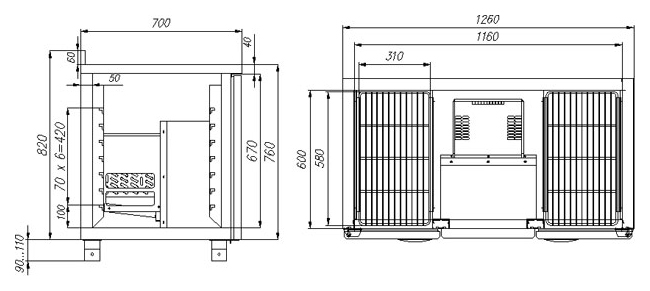 Стол морозильный Carboma T70 L2-1 (2GN/LT Полюс) с бортом (9006-2 корпус серый) предназначен для раскатки теста, обработки ингредиентов и заморозки продуктов, полуфабрикатов и мороженого на предприятиях общественного питания, кафе, ресторанов и торговых точках.