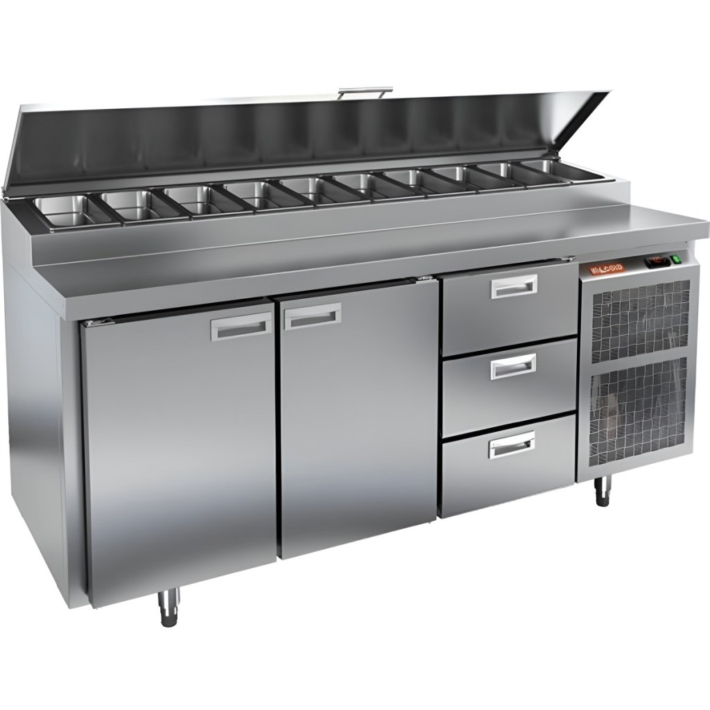 Каталог оборудования Холодильное оборудованиеСтолы охлаждаемыеСтолы холодильные для пиццыСтол холодильный для пиццы HiCold PZ1-113GN (1/3H) Стол холодильный для пиццы HiCold PZ1-113GN (1/3H) Код товара: 064-692 Поделиться: WhatsAppTelegram СравнитьДобавить в КПВ избранное 0 260 272 ₽ В корзину 0 шт Под заказСамовывоз сегодня бесплатно Взять в кредит Купить в лизинг Получить консультацию в WhatsApp Описание Характеристики Отзывы 0 Инструкции 2 Стол холодильный для пиццы HiCold PZ1-113GN (1/3H) — профессиональное оборудование для ресторанов, кафе и предприятий торговли. Он совмещает рабочую поверхность для раскатки теста и подготовки ингредиентов с охлаждаемым блоком для кратковременного хранения продуктов и напитков. Корпус и столешница выполнены из нержавеющей стали, что гарантирует долговечность и лёгкость ухода. Основные особенности: Динамическая система охлаждения — равномерное распределение холода Автоматическая оттайка — поддержка стабильной работы без наледи Электронная панель управления — точная настройка температуры и режимов 2 вместительные полки формата GN 1/1 3 выдвижных ящика для хранения дополнительных ингредиентов Автоматические доводчики дверей с фиксатором открытого положения — удобство загрузки и выгрузки Легкозаменяемые магнитные уплотнители — поддержание герметичности Открытая агрегатная часть — облегчённый доступ к техническим элементам Регулируемые по высоте ножки — установка по уровню Максимальная глубина гастроёмкостей: 150 мм (крайняя правая — 100 мм) Глубина рабочей поверхности: 324 мм Толщина столешницы и теплоизоляции: 50 мм Вместимость салат-бара: до 10 гастроёмкостей Стол холодильный HiCold PZ1-113GN (1/3H) — функциональный и удобный стол для пиццы и салатов, совмещающий рабочую поверхность, охлаждаемый блок, полки и ящики для хранения. Разная глубина гастроёмкостей и продуманная организация рабочего пространства делают его оптимальным решением для профессиональной кухни.Изображение товара, представленного на фото, может отличаться от его фактического вида. Показать все Габаритные размеры1835×700×1000 ммДиапазон рабочей температурыот +2 до +10 °CРасположение агрегатаБоковое Материал столешницыНержавеющая Тип столаС дверьми и ящиками Тип двериГлухая Объём505 лТип гастроемкостейGN 1/3 Количество дверей2 штКоличество ящиков3 штРазмер полки530×325 ммНапряжение220 ВМощность0,5 кВтТип охлажденияДинамическое Тип оттайкиАвтоматическая Габариты в упаковке2000×850×1140 ммВес нетто172 кгВес брутто200 кгБрендHicoldВсе холодильные столы для пиццы HicoldВсе нержавеющие холодильные столы для пиццы Оставить отзыв Еще никто не оставил отзыв на этот товар Паспорт на HICOLD PZ1-113GN.pdfДекларация о соответствии.pdf Ранее просмотрено Под заказ 345 321 ₽ Стол холодильный для пиццы HiCold PZ3-1122/GN камень