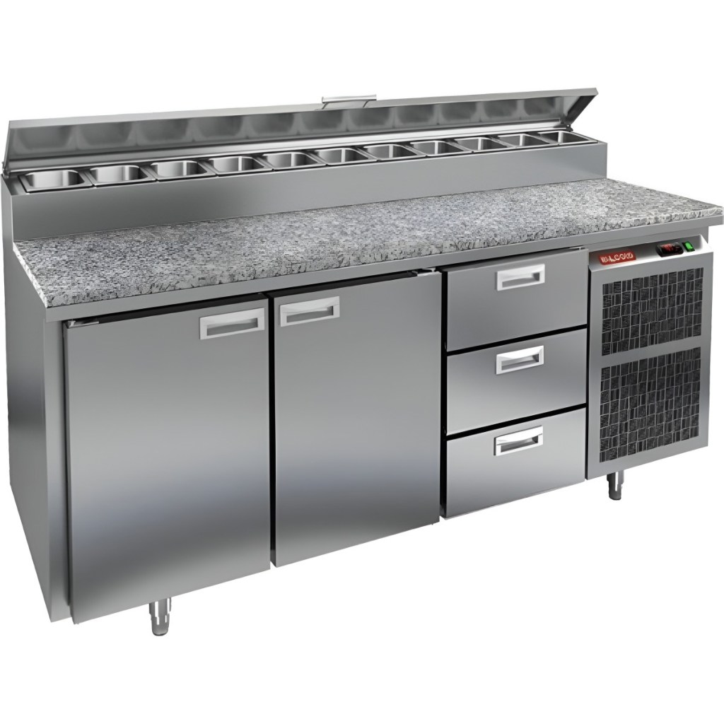 Каталог оборудования Холодильное оборудованиеСтолы охлаждаемыеСтолы холодильные для пиццыСтол холодильный для пиццы HiCold PZ2-113GN (1/6) камень Стол холодильный для пиццы HiCold PZ2-113GN (1/6) камень Код товара: 064-762 Поделиться: WhatsAppTelegram СравнитьДобавить в КПВ избранное 0 292 761 ₽ В корзину 0 шт Под заказСамовывоз сегодня бесплатно Взять в кредит Купить в лизинг Получить консультацию в Max Описание Характеристики Отзывы 0 Инструкции 2 Стол холодильный для пиццы HiCold PZ2-113/GN (1/6) камень предназначен для кухонь и предприятий общественного питания. Он используется для раскатки теста, подготовки ингредиентов для пиццы, салатов и других блюд, а также для охлаждения и кратковременного хранения скоропортящихся продуктов. Модель совмещает гранитную рабочую поверхность и охлаждаемый отсек с 2 дверьми и 3 ящиками, обеспечивая удобный доступ к ингредиентам и эффективное хранение. Особенности: Динамическая система охлаждения для равномерного поддержания температуры Автоматическая оттайка для удобного обслуживания Электронная панель управления для точной настройки параметров Вместительная внутренняя полка формата GN 1/1 (размер 530×325 мм) 2 двери и 3 вместительных ящика для хранения ингредиентов Автоматические доводчики дверей с фиксатором открытого положения Легкозаменяемые магнитные уплотнители для герметичности Открытая агрегатная часть для легкого доступа к компонентам Регулируемые по высоте ножки для устойчивости Гранитная рабочая поверхность глубиной 486 мм и толщиной 50 мм — устойчива к повреждениям, высоким температурам и царапинам Толщина теплоизоляции: 50 мм Максимальная глубина гастроемкостей: 100 мм Вместимость салат-бара: 11 гастроемкости Стол холодильный HiCold PZ2-113/GN (1/6) камень — это надёжный и функциональный стол для пиццы. Он сочетает рабочую поверхность и охлаждаемый отсек, облегчает хранение и подготовку ингредиентов, повышает удобство работы повара и соответствует стандартам профессиональной кухни.Изображение товара, представленного на фото, может отличаться от его фактического вида. Показать все Габаритные размеры1835×700×1000 ммДиапазон рабочей температурыот +2 до +10 °CРасположение агрегатаБоковое Материал столешницыГранитная Тип столаС дверьми и ящиками Тип двериГлухая Объём505 лТип гастроемкостейGN 1/6 Количество дверей2 штКоличество ящиков3 штРазмер полки530×325 ммНапряжение220 ВМощность0,5 кВтТип охлажденияДинамическое Тип оттайкиАвтоматическая Габариты в упаковке2000×850×1140 ммВес нетто172 кгВес брутто248 кгБрендHicoldВсе холодильные столы для пиццы Hicold Оставить отзыв Еще никто не оставил отзыв на этот товар Паспорт на HICOLD PZ2-113/GN.pdfДекларация о соответствии.pdf Ранее просмотрено В наличии 207 892 ₽ Стол холодильный для пиццы HiCold PZ2-11/GN (1/6H) камень Под заказ 290 061 ₽ Стол холодильный для пиццы HiCold PZ1-1111GN (1/3) камень