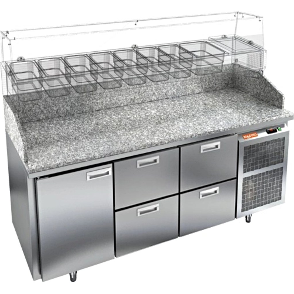 Каталог оборудования Холодильное оборудованиеСтолы охлаждаемыеСтолы холодильные для пиццыСтол холодильный для пиццы HiCold PZ3-122/GN камень Стол холодильный для пиццы HiCold PZ3-122/GN камень Код товара: 065-008 Поделиться: WhatsAppTelegram СравнитьДобавить в КПВ избранное 0 327 952 ₽ В корзину 0 шт Под заказСамовывоз сегодня бесплатно Взять в кредит Купить в лизинг Получить консультацию в WhatsApp Описание Характеристики Отзывы 0 Стол холодильный для пиццы HiCold PZE3-122/GN камень предназначен для использования в пиццериях, кафе, магазинах и ресторанах. Он идеально подходит для раскатки теста, подготовки ингредиентов и кратковременного хранения скоропортящихся продуктов. Витрина приобретается отдельно. Стол сочетает корпус из нержавеющей стали и гранитную столешницу, которая устойчива к механическим и температурным нагрузкам и удобна в работе с тестом. Такая конструкция обеспечивает долговечность, гигиеничность и простоту ухода. Особенности модели: Охлаждение: динамическое — равномерное поддержание температуры Оттайка: автоматическая — удобство и экономия времени Панель управления: электронная — точная настройка температуры Ножки: регулируемые по высоте — устойчивость на неровной поверхности Двери: 1 глухая дверца с автоматическими доводчиками и фиксатором открытого положения Ящики: 4 выдвижных ящика — удобное хранение ингредиентов Уплотнители: легкозаменяемые магнитные — герметичность и простота обслуживания Толщина теплоизоляции: 50 мм — сохранение холода и энергоэффективность Рабочая поверхность: глубина 680 мм — удобство работы HiCold PZE3-122/GN камень— это надёжный и функциональный холодильный стол для пиццы, который сочетает прочность, эргономику и эффективное охлаждение. Благодаря гранитной столешнице, корпусу из нержавеющей стали, двум глухим дверям и двум выдвижным ящикам он станет универсальным решением для профессиональной кухни. Изображение товара, представленного на фото, может отличаться от его фактического вида. Показать все Габаритные размеры1835×700×1050 ммДиапазон рабочей температурыот +2 до +10 °CРасположение агрегатаБоковое Материал столешницыГранитная Тип столаС дверьми и ящиками Тип двериГлухая Объём505 лКоличество дверей1 штКоличество ящиков4 штРазмер полки530×325 ммНапряжение220 ВМощность0,5 кВтТип охлажденияДинамическое Тип оттайкиАвтоматическая Габариты в упаковке2000×850×1180 ммВес нетто172 кгВес брутто192 кгБрендHicoldВсе холодильные столы для пиццы HicoldВсе нержавеющие холодильные столы для пиццы Оставить отзыв Еще никто не оставил отзыв на этот товар Ранее просмотрено Под заказ 257 662 ₽ Стол холодильный для пиццы HiCold PZ2-1111GN (1/6) З Под заказ 207 801 ₽ Стол холодильный для пиццы HiCold PZE1-111GN (1/3) камень