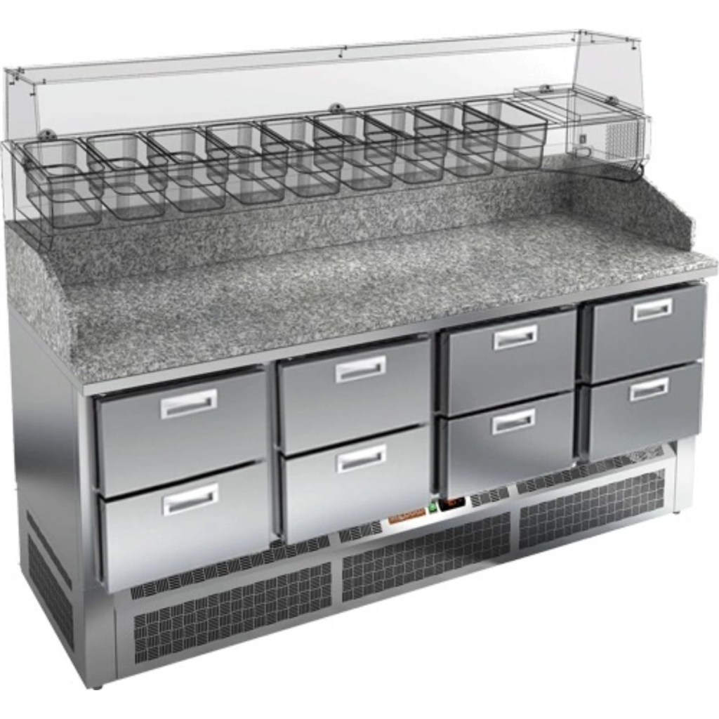 Каталог оборудования Холодильное оборудованиеСтолы охлаждаемыеСтолы холодильные для пиццыСтол холодильный для пиццы HiCold PZE3-222/GN камень Стол холодильный для пиццы HiCold PZE3-222/GN камень Код товара: 064-994 Поделиться: WhatsAppTelegram СравнитьДобавить в КПВ избранное 0 343 342 ₽ В корзину 0 шт Под заказСамовывоз сегодня бесплатно Взять в кредит Купить в лизинг Получить консультацию в Max Описание Характеристики Отзывы 0 Стол холодильный для пиццы HiCold PZE3-222/GN камень предназначен для использования в пиццериях, кафе, магазинах и ресторанах. Он идеально подходит для раскатки теста, подготовки ингредиентов для пиццы и кратковременного хранения скоропортящихся продуктов. Витрина приобретается отдельно. Особенности модели: Корпус: нержавеющая сталь — прочный, гигиеничный и долговечный Столешница: гранит — устойчива к царапинам, ударам и температурным нагрузкам Охлаждение: динамическое для равномерного поддержания температуры Оттайка: автоматическая — удобство и экономия времени Панель управления: электронная — точная настройка температуры Ножки: регулируемые по высоте — устойчивость на неровной поверхности Ящики: 6 выдвижных ящика — удобное хранение ингредиентов Уплотнители: легкозаменяемые магнитные — герметичность и простота обслуживания Толщина теплоизоляции: 50 мм — сохранение холода и энергоэффективность Рабочая поверхность: глубина 680 мм — удобство работы HiCold PZE3-222/GN камень — надёжный и функциональный холодильный стол с гранитной столешницей, который сочетает прочность, удобство в работе и эффективное охлаждение продуктов. Он станет универсальным решением для профессиональной кухни, где важны скорость, организация и сохранение свежести ингредиентов. Изображение товара, представленного на фото, может отличаться от его фактического вида. Показать все Габаритные размеры1485×700×1050 ммДиапазон рабочей температурыот +2 до +10 °CРасположение агрегатаНижнее Материал столешницыГранитная Тип столаС ящиками Объём375 лКоличество ящиков6 штРазмер полки530×325 ммНапряжение220 ВМощность0,2 кВтТип охлажденияДинамическое Тип оттайкиАвтоматическая Габариты в упаковке1700×850×1280 ммВес нетто227 кгВес брутто280 кгБрендHicoldВсе холодильные столы для пиццы HicoldВсе нержавеющие холодильные столы для пиццы Оставить отзыв Еще никто не оставил отзыв на этот товар Ранее просмотрено Под заказ 358 552 ₽ Стол холодильный для пиццы HiCold PZ3-222/GN камень Под заказ 391 221 ₽ Стол холодильный для пиццы HiCold PZ3-2321/GN камень