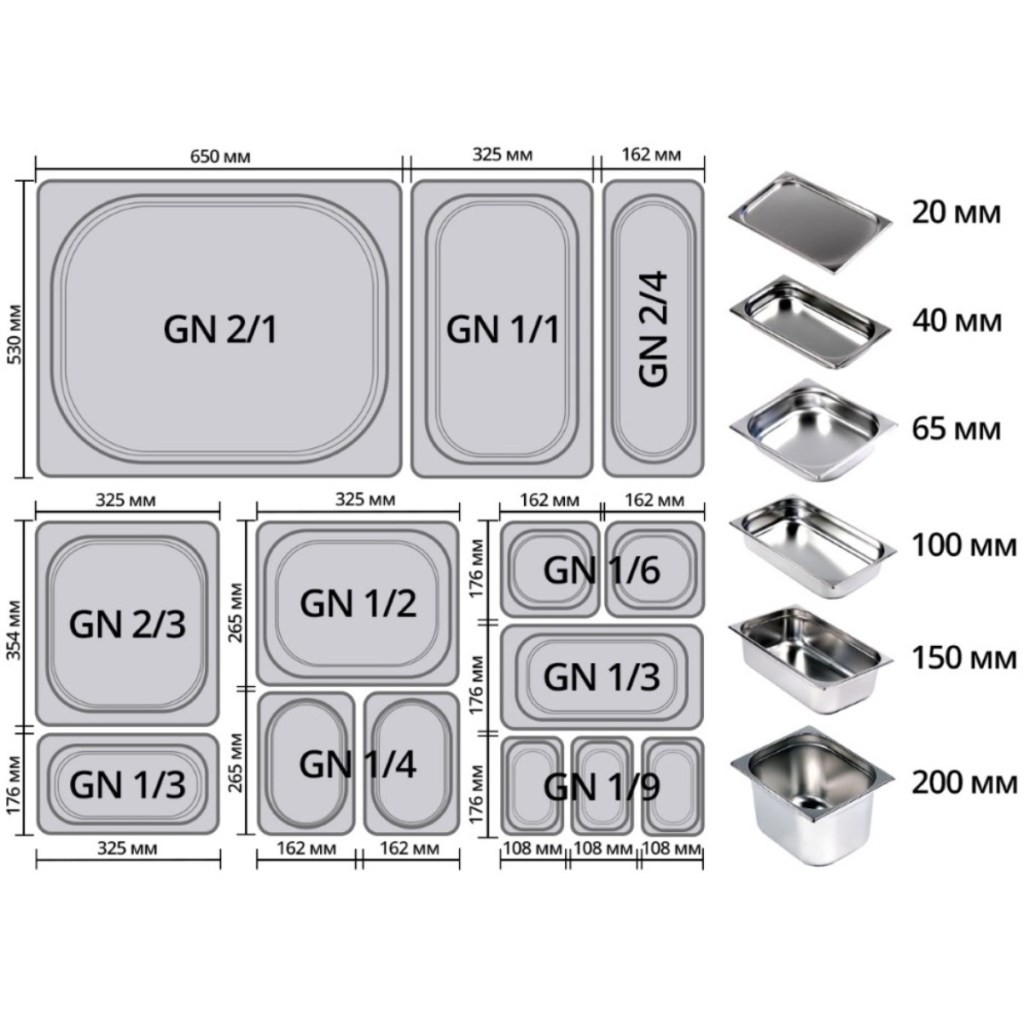 Гастроёмкости приобретаются отдельно (не входят в комплект).
